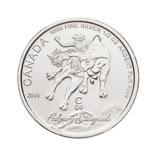 CALGARY STAMPEDE _ 2015 1/2 oz Pure Silver Coin _ Royal Canadian Mint Introducing the new 1/2 oz 2015 Calgary Stampede Silver Coin. The Royal Canadian Mint is renowned worldwide both for the quality of the coins they mint as well as for the diverse subject matter featured on their coins. This coin presents a unique opportunity for investors to add a fractional bullion coin from a government mint to their investment portfolio. We are the exclusive worldwide distributor for this coin. The Royal Canadian Mint is one of the worldês largest refiners of silver and produces both bullion products as well as a wide variety of numismatic and limited mintage products. One area they have left relatively untouched is the market for fractional silver coins priced as bullion rather than as semi-numismatic or numismatic offerings. Each 1/2 oz bullion coin is struck in 9999 fine silver, with both weight and purity guaranteed by the RCM. This allows you to protect your savings with the security of a government minted product while still being able to invest in a low premium bullion product. The coin carries a face value of $2 and is legal tender in Canada. SPECIFICATIONS Material: Pure Silver (99.99%) Finish: Bullion Weight: 1/2 oz Diameter: 32mm Edge: Serrated Face Value:¾$2 Dollars