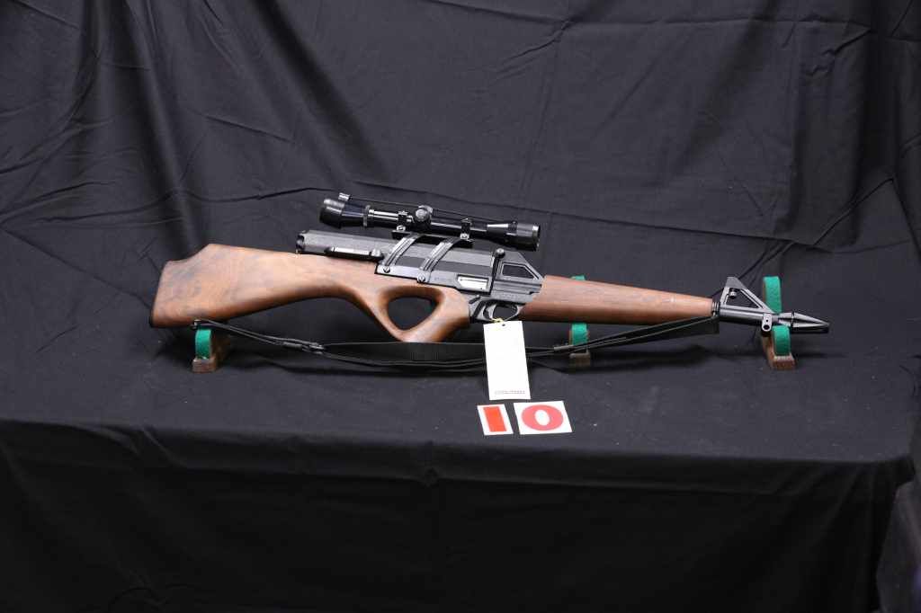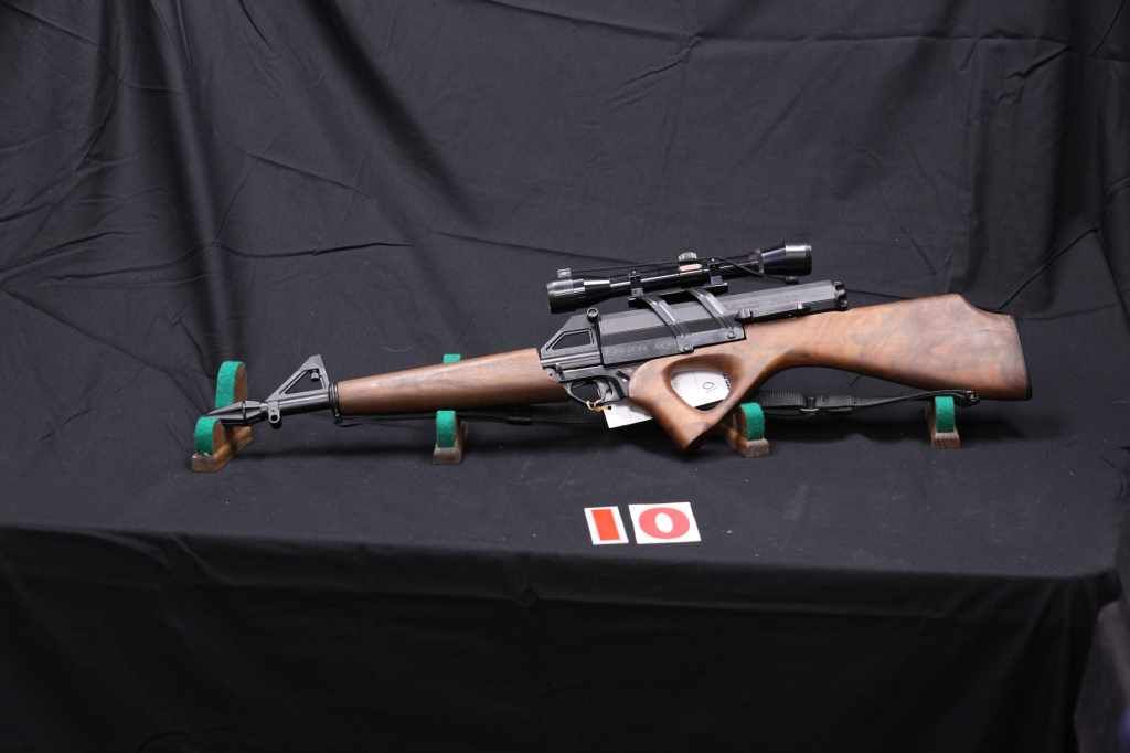 CALICO, M100, 22LR CAL. LOOKS TO BE AS NEW, WITH SIMMONS SCOPE, AND SLING. NCA COMES WITH NO MAG. OUT OF STATE COMES WITH 100 ROUND MAG. (L) A6411, D003375