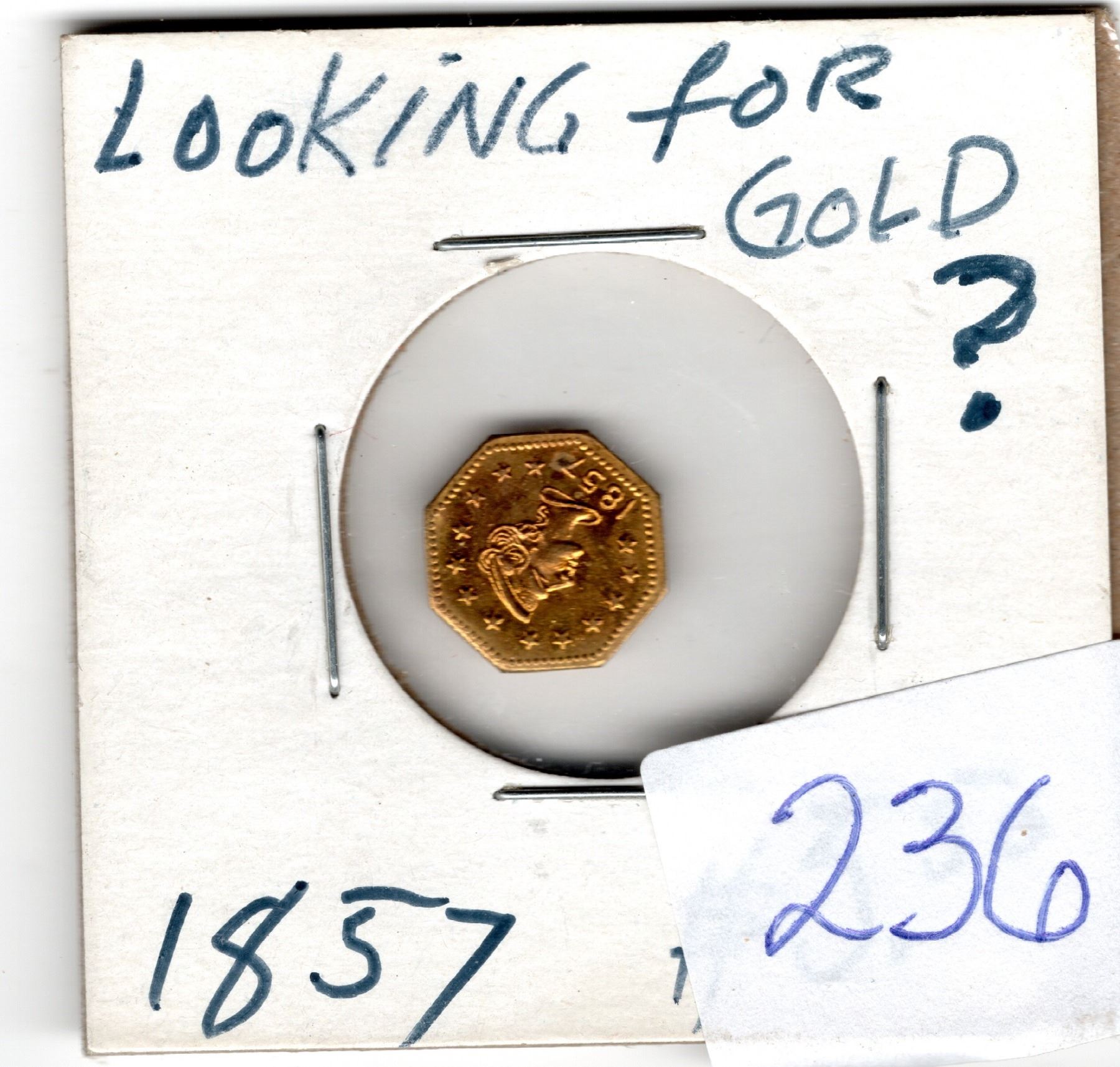 CALIFORNIA 1/2 DOLLAR GOLD REPLICA? COIN SIZE OF OLD SILVER NICKEL