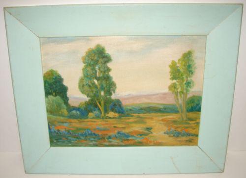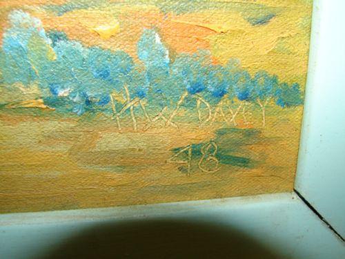 H.W. DAVEY CALIFORNIA OIL ON BOARD PAINTING. Depicts a Californian landscape scene. Signed in lower right “H.W. Davey/48”. 17” x 21” framed.