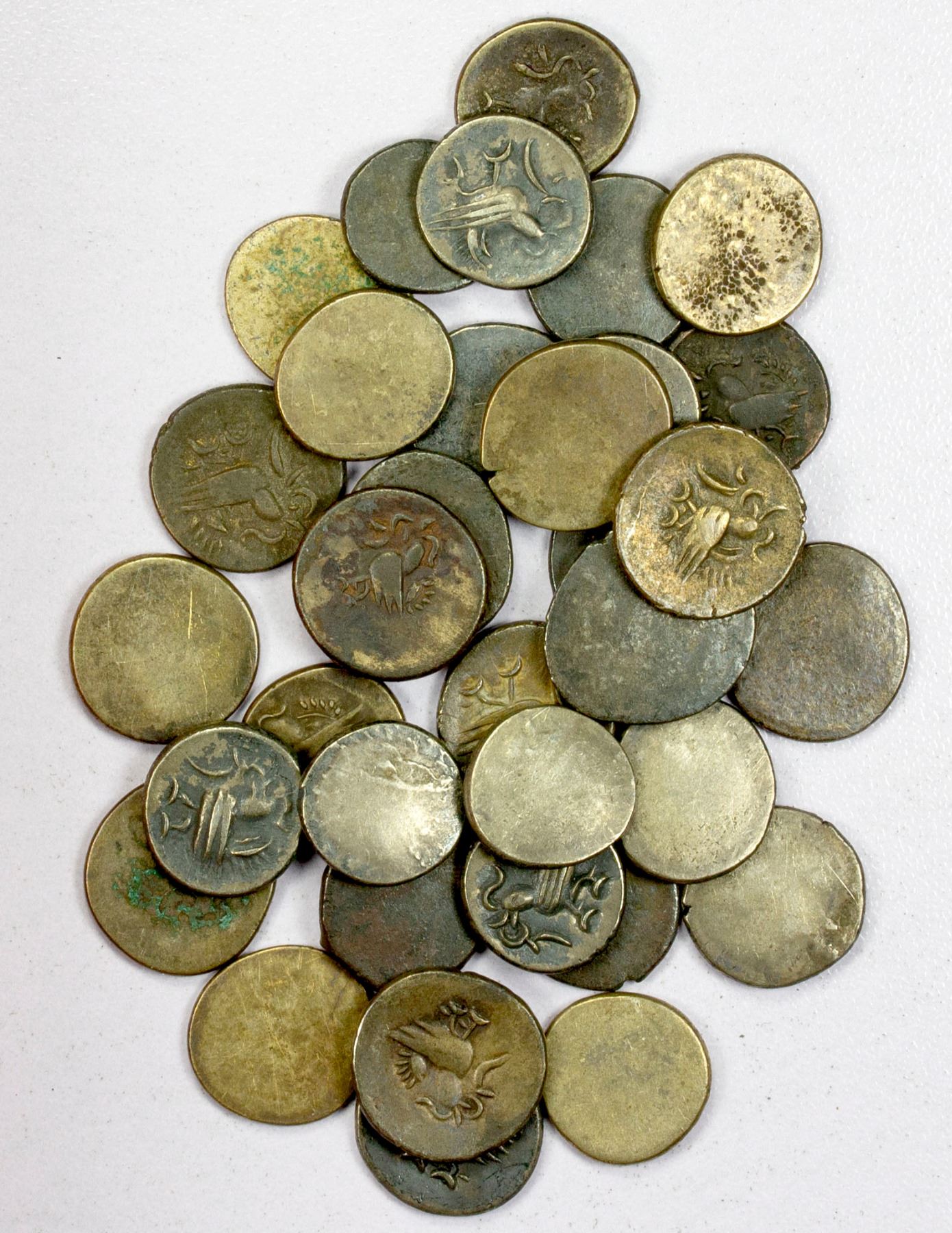 CAMBODIA: Ang Duong, 1840-1860, LOT of 35 AR 2 pe, all KM-7.3 or similar, nearly all struck in better silver than the billon types, about half especially bold with lovely details; most between VF and EF, a very lovely group; retail value $550, lot of 35 pieces.