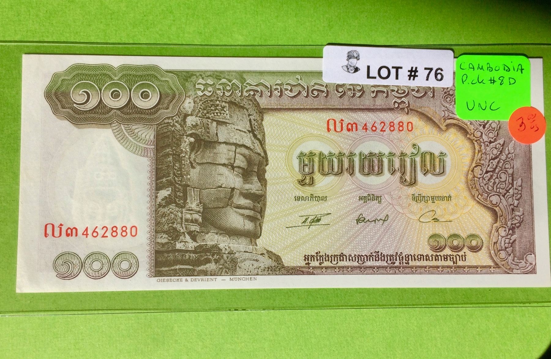 CAMBODIA BANKNOTE UNC CENT RIELS, PICK# 8D