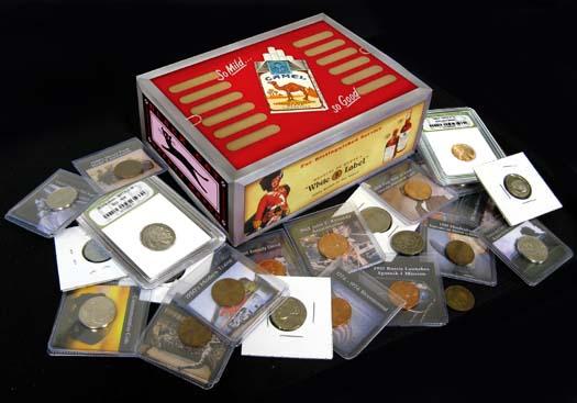 CAMEL BRAND CIGARETTE STYLE BOX WITH OLD COINS