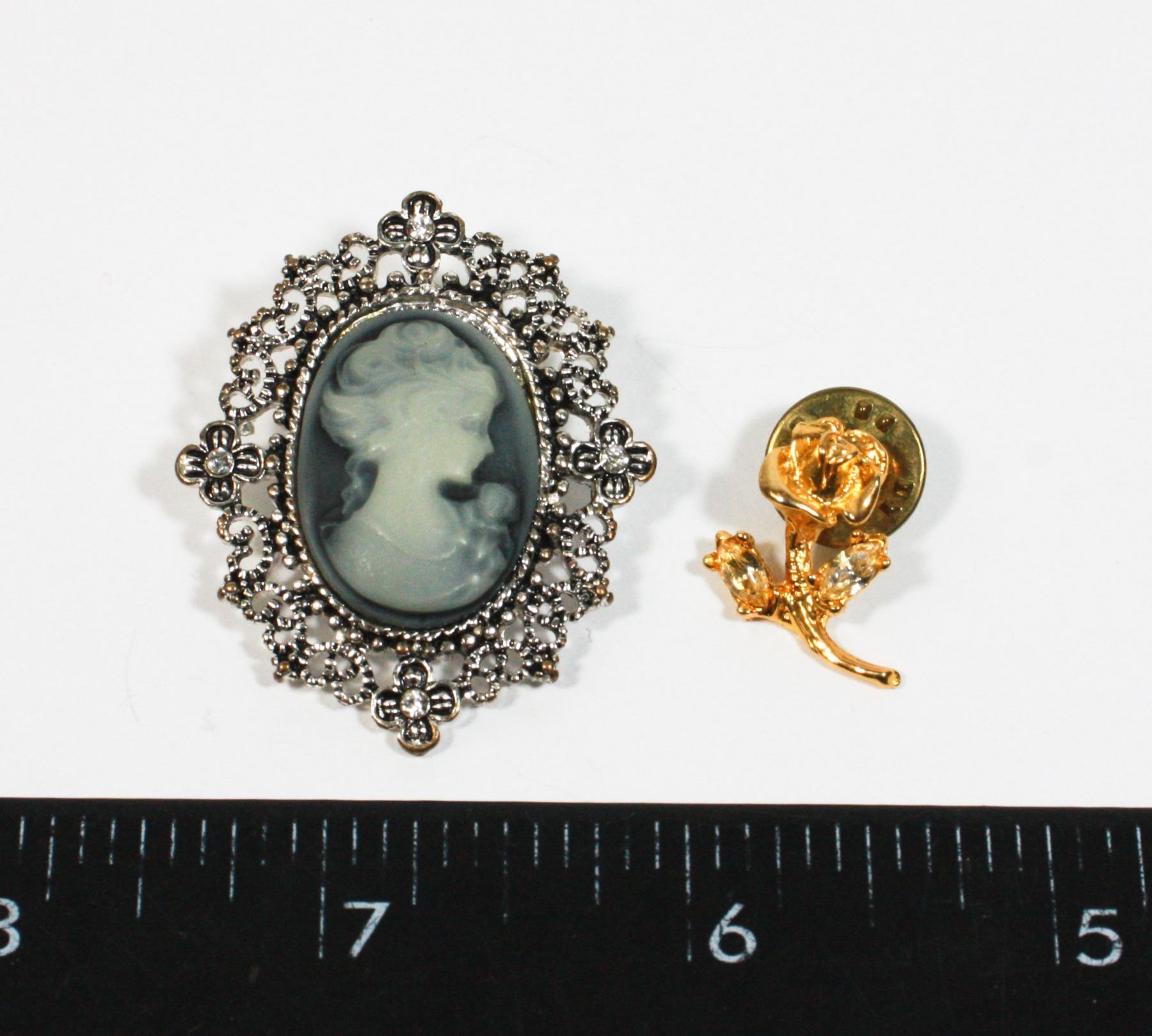 CAMEO STYLE BROOCH AND ROSE PIN