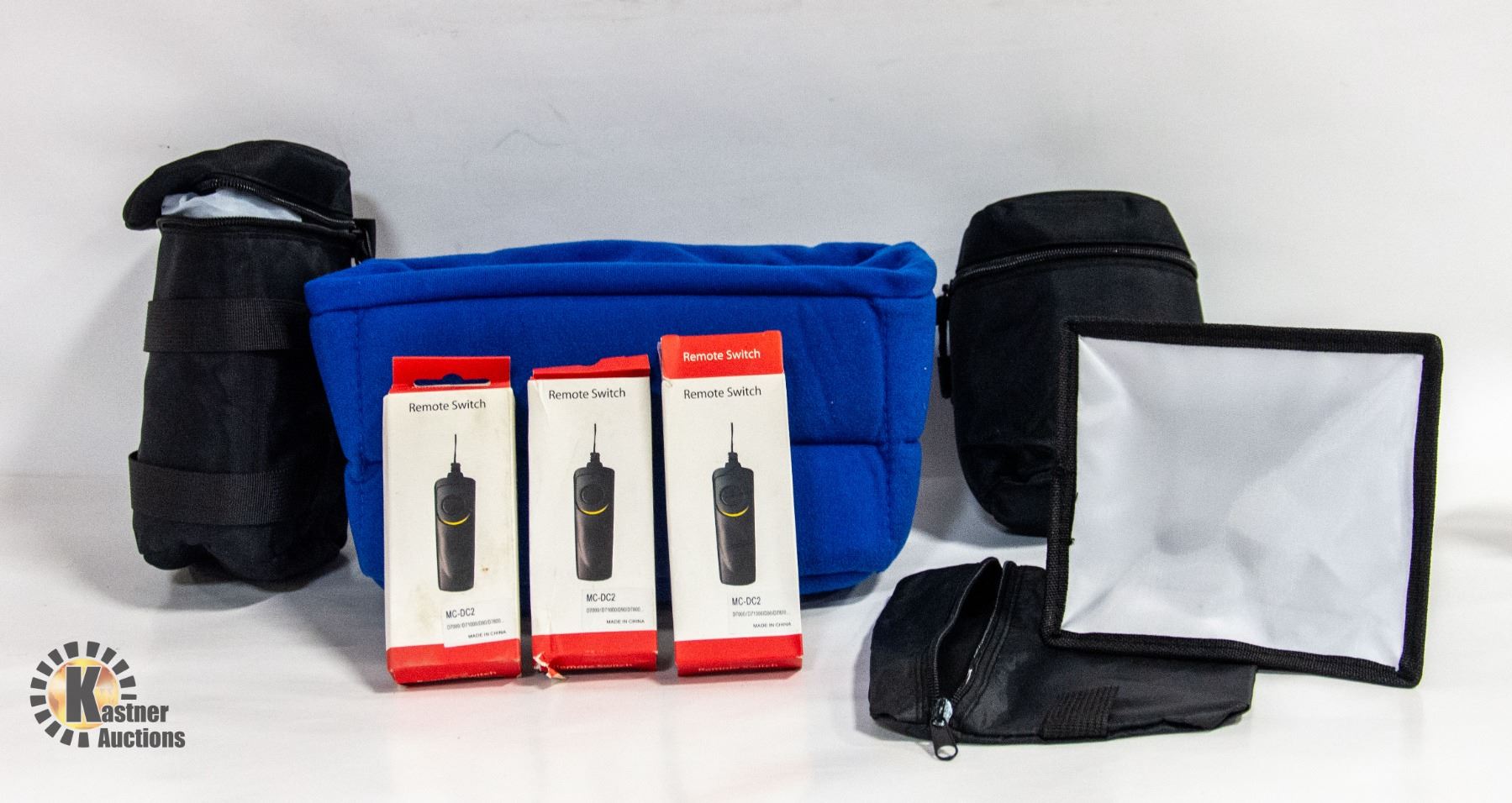 CAMERA BAG, LENS CASE BIG, LENS CASE SMALL, 3X REMOTE SHUTTER RELEASE TRIGGER FOR NIKON, COLLAPSIBLE SOFTBOX