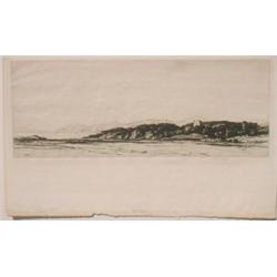 CAMERON, Sir David Young, 1865-1945. "Loch Aline" et/and "Castle View and Loch". 2 eau-fortes, signées au crayon. École écossaise. 2 etchings, pencil signed. Scottish School. 6" x 12 3/4" - 15.2cm x 32.4cm et/and 4 3/4" x 12 3/4" - 12cm x 32.4cm. $350/550