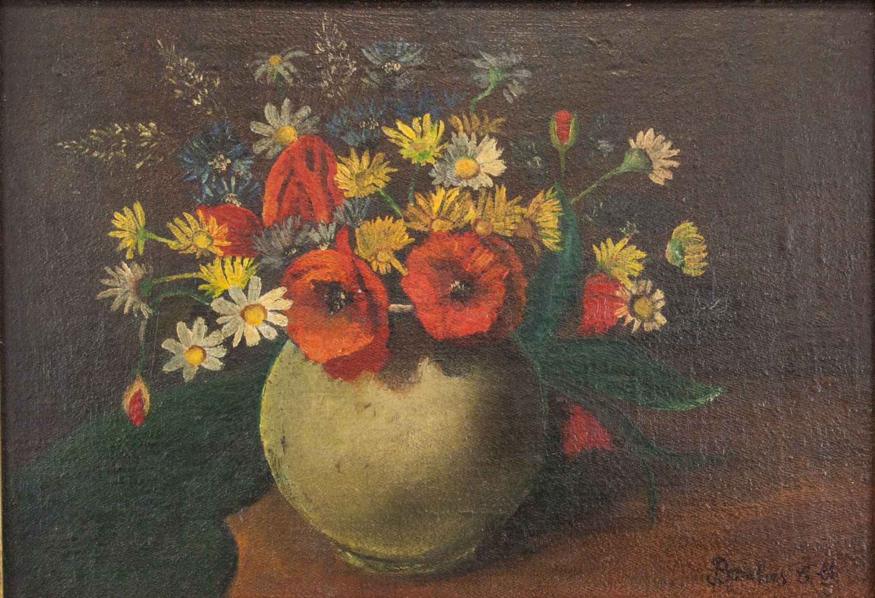 Oil on board, framed. Featuring a still life painting of flowers. Signed and attr. Camille Bombois (French, 1883-1970) on lower right corner. 22.9 x 35.6 cm (9 x 14 in). Camille Bombois was a French painter known for his depictions of light-dappled suburban streets, lively circus scenes, and pastoral landscapes. Painted in a self-taught style similar to that of Henri Rousseau, Bombois’s mature works employed rich black and greens heightened by bright reds and blues. Born on February 3, 1883 in Venarey-les-Laumes, France, Bombois attended school until the age of 12 before becoming a farm laborer. As an adult he joined a traveling circus and performed as a strong man and wrestler, later settling in Paris where he began to paint. While in Paris, he was discovered by the art dealer Wilhelm Uhde, who helped promote his career. The artist died on June 6, 1970 in Paris, France. Today, Bombois’s works are held in the collections of The Museum of Modern Art in New York, the North Carolina Museum of Art in Raleigh, and the Musée Maillol in Paris, among others. PROVENANCE: Private collection, Toronto, ON