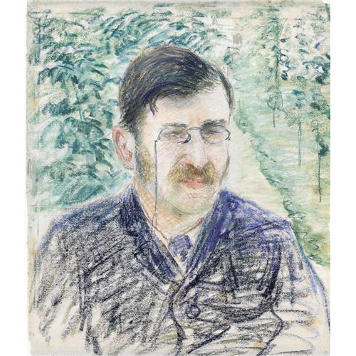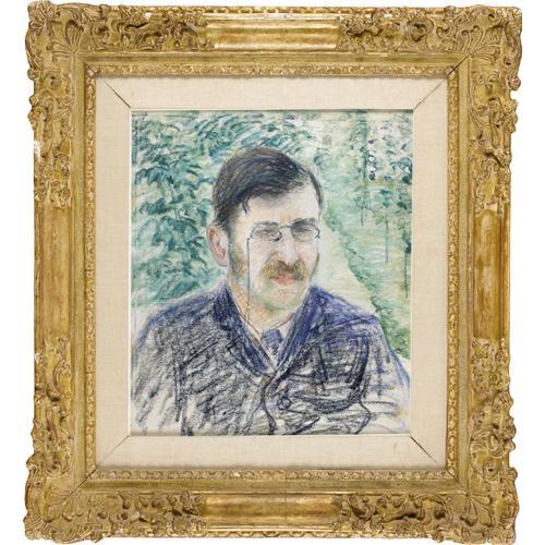 <B>CAMILLE PISSARO</B></I> (French 1830-1903)<BR><I>Portrait d'Alfred Isaacson,</B></I> circa 1883<BR>Pastel on paper<BR>20-1/2 x 16 inches (52.1 x 40.6 cm)<BR><BR>Provenance:<BR>Acquired from the artist by his nephew, Alfred Isaacson (London);<BR>Hirschl & Adler Galleries (New York)<BR>Henry Pearlman collection (New York)<BR><BR>Literature:<BR>Ludovic-Rodolfe Pissarro and Lionello Venturi, <I>Camille Pissarro, Son Art-Son Oeuvre</B></I> (Paris, 1939), vol. 1, no. 1564, vol. 2, no. 1564, illus.;<BR>Camille Pissarro, <I>Letters to His Son Lucien,</B></I> edited with the assistance of Lucien Pissarro by John Rewald, 3rd ed. (New York, 1972), pp. 49-51.<BR><BR>This lively sketch depicts Pissarro's nephew, his half-sister's son, Alfred Isaacson. The artist's own son, Lucien, stayed with Alfred and his family when in London. Writing to Lucien in a letter dated December 28, 1883, Pissarro mentions this portrait, stating that it is a good resemblance (see <I>Letters</B></I> in Literature above). The spirited letter mostly addresses popular philosophical matters, revealing the artist's passion for the groundbreaking liberal ideas of the day. Pissarro promises to send his son a copy of Baudelaire's <I>Les Fleurs du Mal</B></I> and also encourages Alfred to read books on socialism as well as the works of John Stuart Mill: "They are easy reading and should give him Alfred a general idea of the movement which points to the new road our society must take" (<I>Letters,</B></I> p. 50).<BR><BR><BR><BR><b>Shipping:</b> Requires 3rd Party Shipping (<a target="_blank" href="http://www.heritageauctions.com/common/shipping.php">view shipping information</a>)