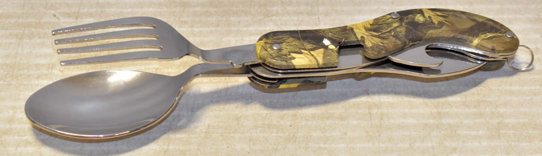 CAMO MULTI TOOL INCLUDING FORK, SPOON, CAN OPENER