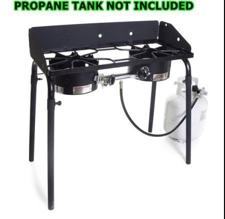 When adventure calls, are you prepared to answer? With the Explorer Two Burner Stove, you will be. The durable, versatile stove packs enough power in its 30,000 BTU burners to boil water and cook your food, whether you're tailgating at the football stadium or camping with the family. Portability is no problem with the foldable legs, and a three-sided windscreen makes outdoor cooking easy. You'll be up for anything when you have the Explorer 2x Stove with you, so add it to your collection today.