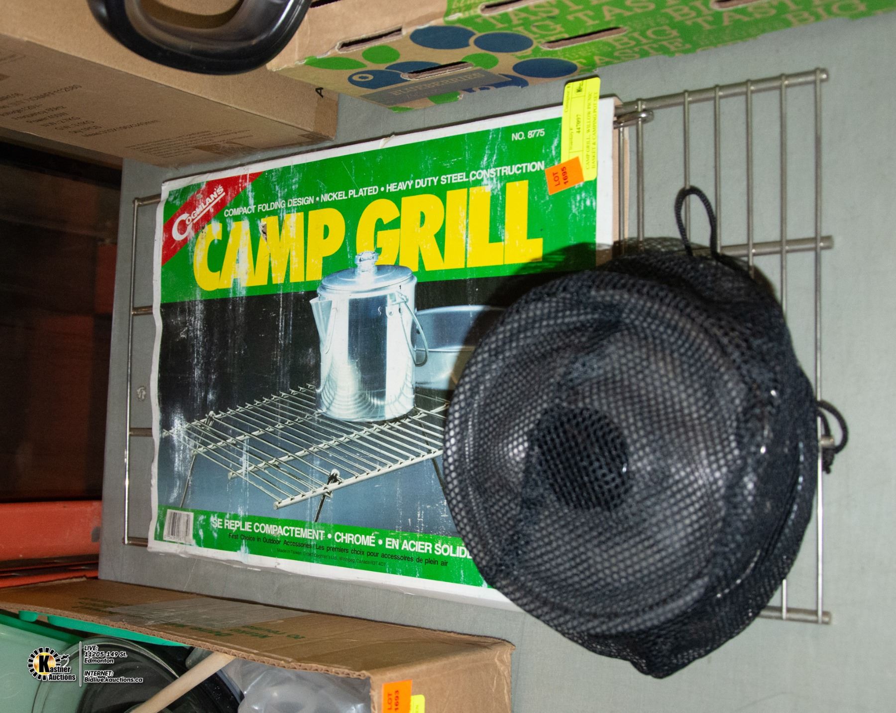 CAMP GRILL, WILLOW PICNIC BASKET & CAMPING POT SET ESTATE- NONE