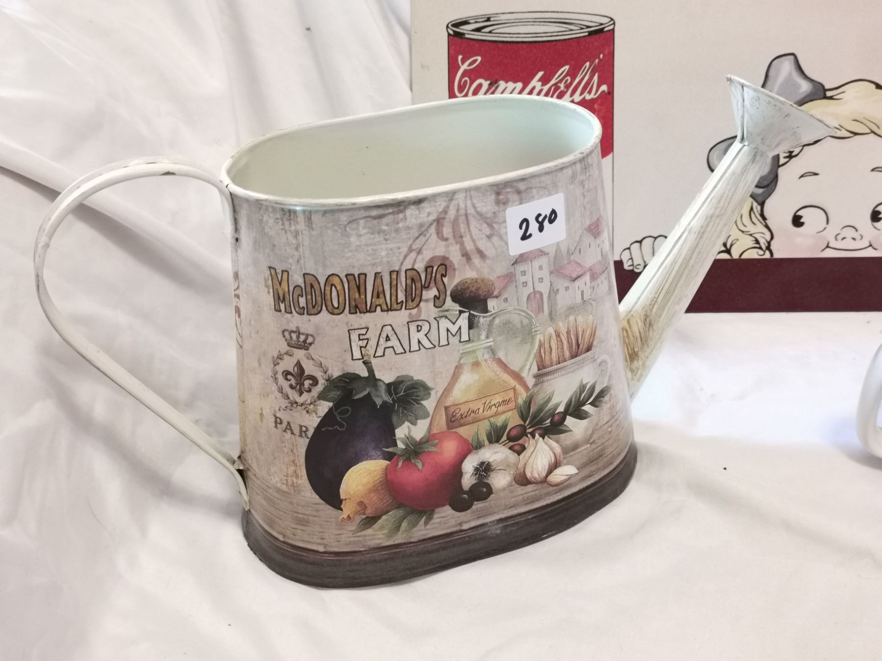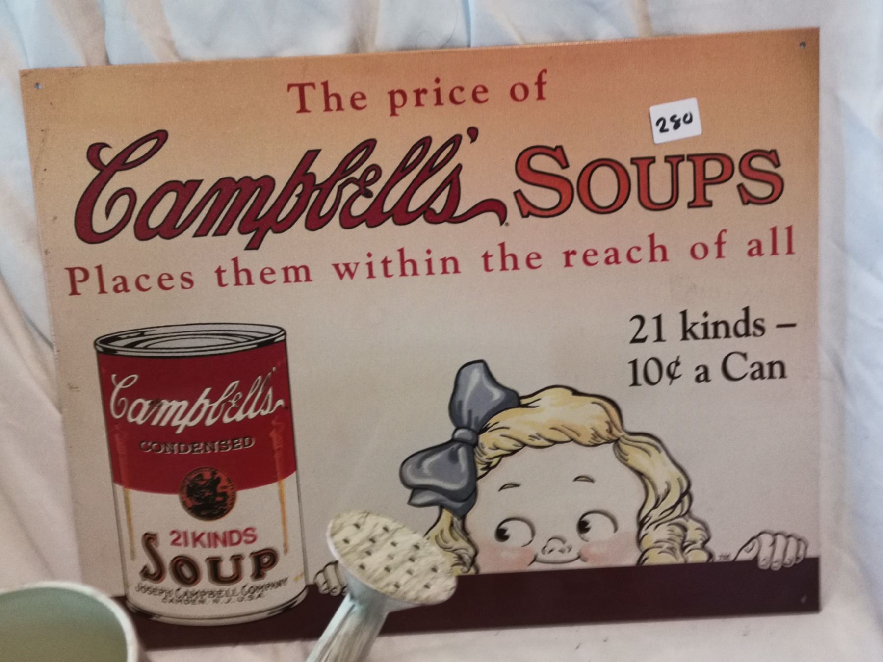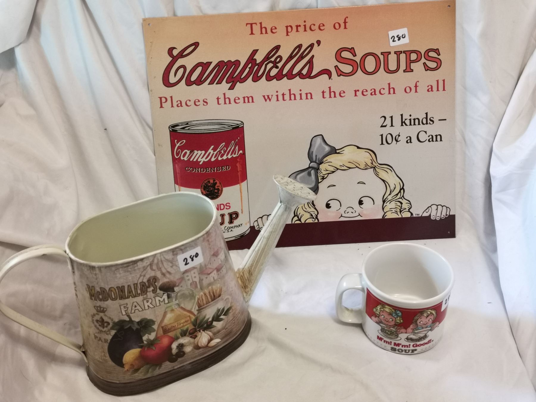 CAMPBELL SOUP SIGN, CUP, WATERING CAN