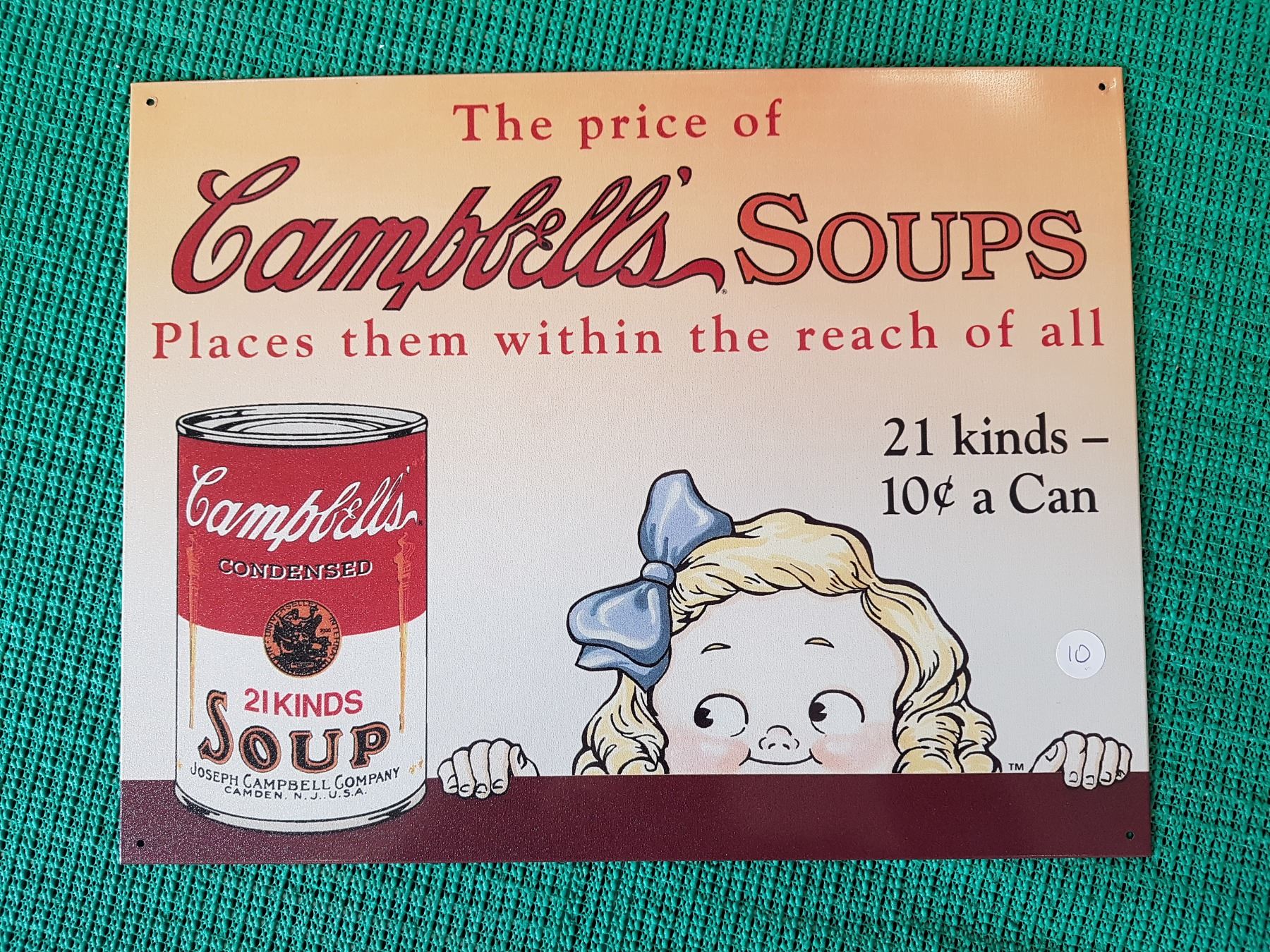CAMPBELLS SOUP TIN SIGN, 16 X 12 INCHES (REPRO)