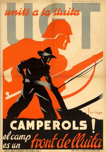 PARRIEGO. CAMPEROLS, EL CAMP ES UN FRONT DE LLUITA. 1936. 100x70cm. (40x27in.). Litografía. A-.