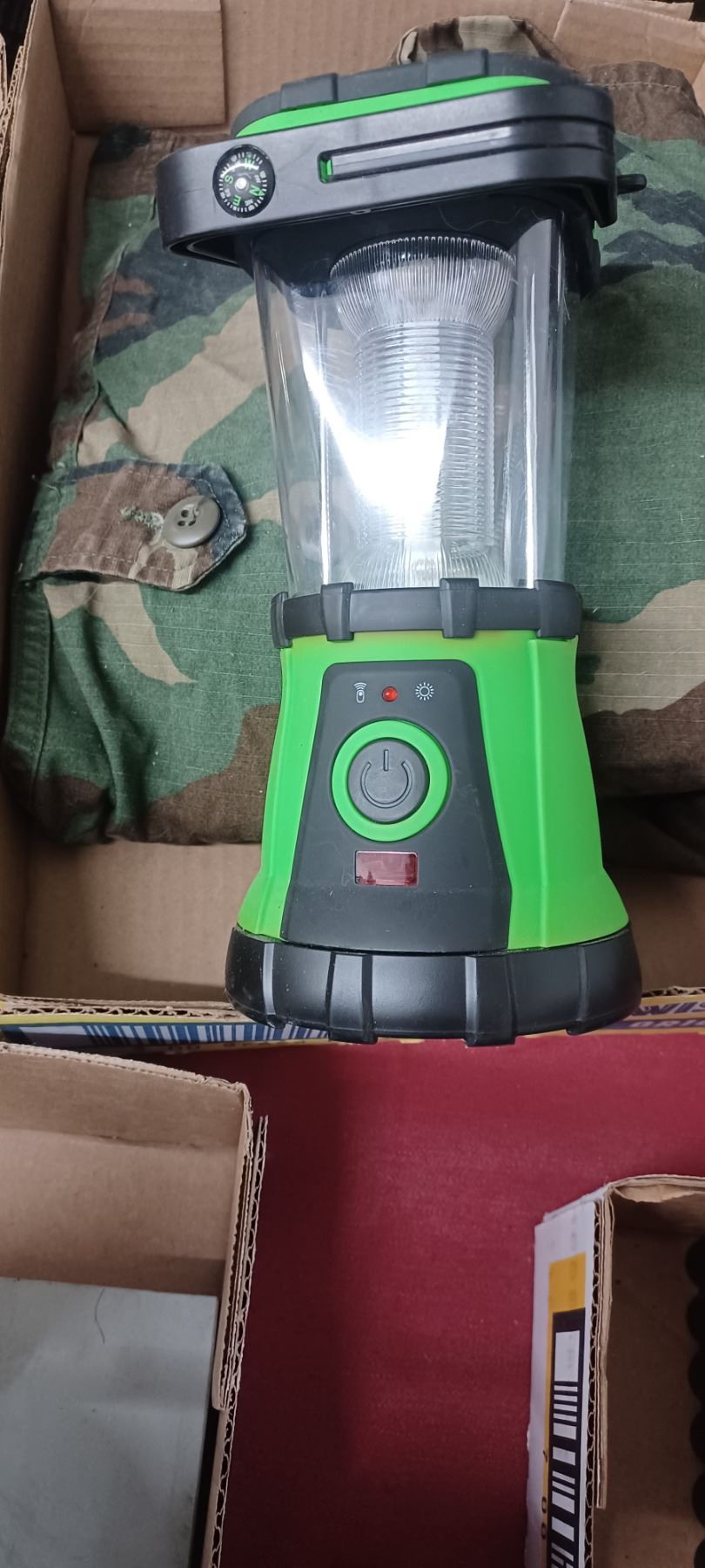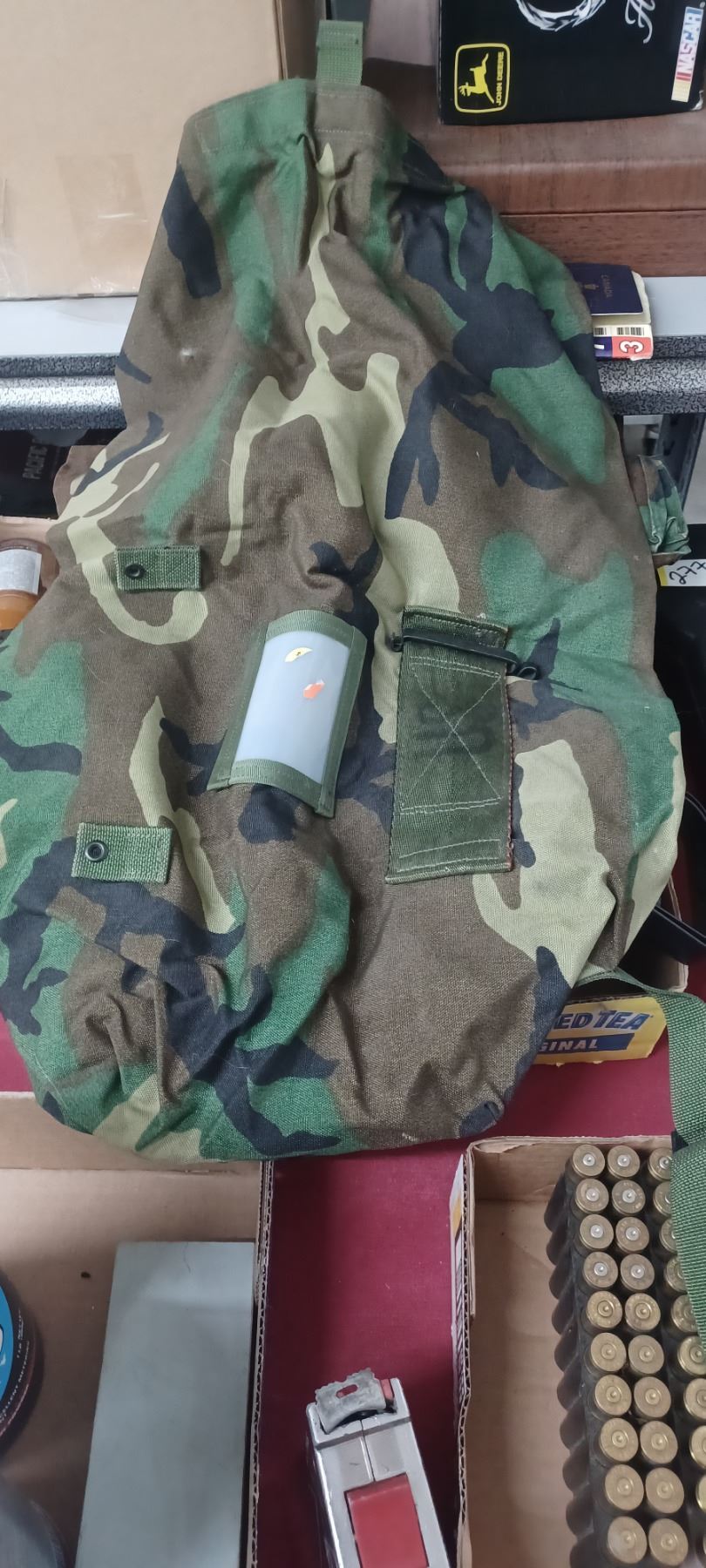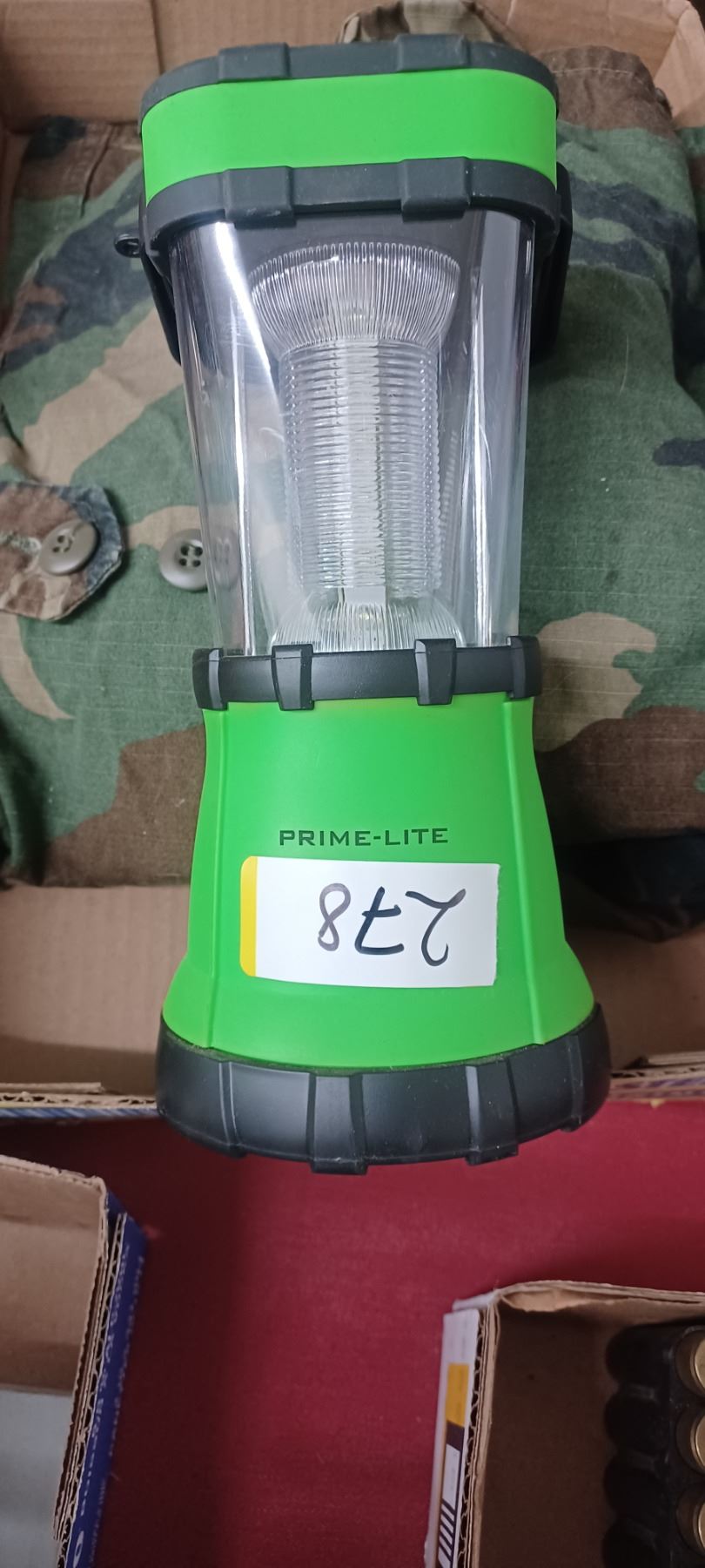 CAMPING LANTERN, MILITARY LARGE SHIRT AND DUFFEL BAG