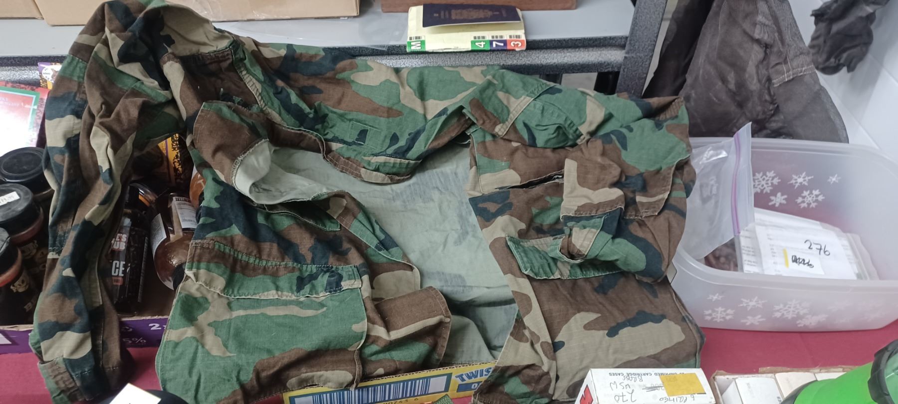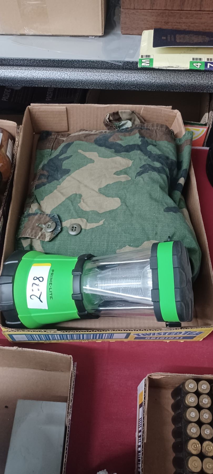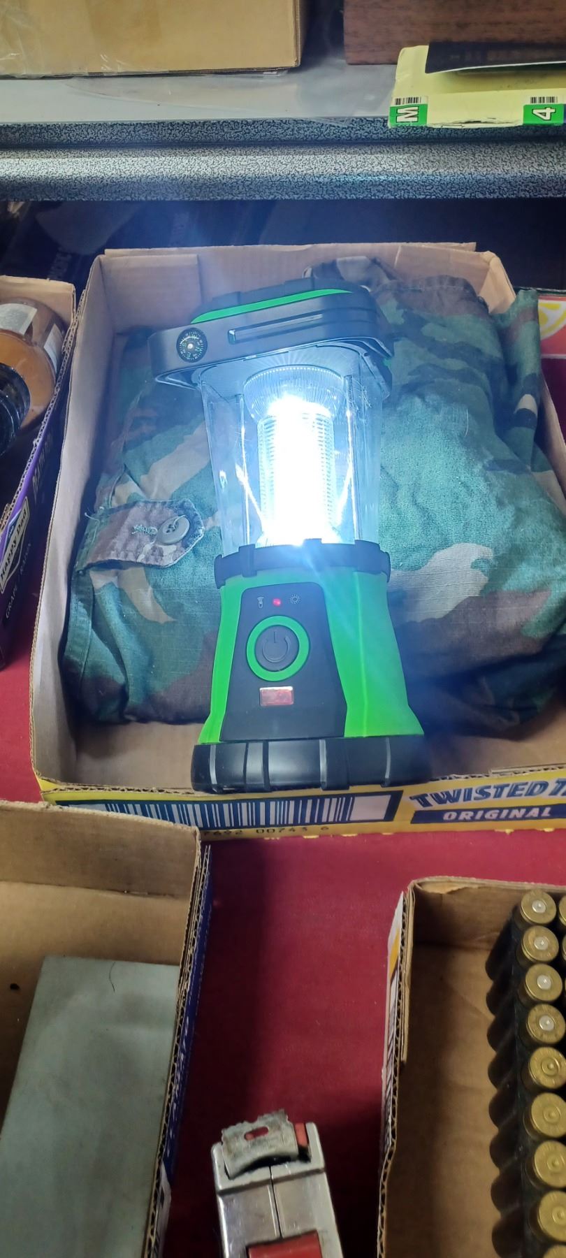 CAMPING LANTERN, MILITARY LARGE SHIRT AND DUFFEL BAG