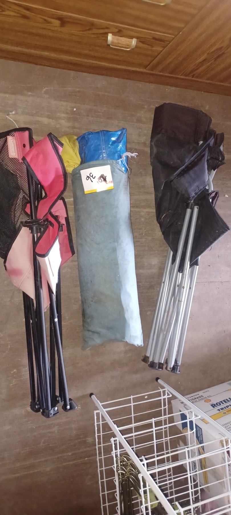 CAMPING TENT C/W POLES AND 2 CAMPING CHAIRS