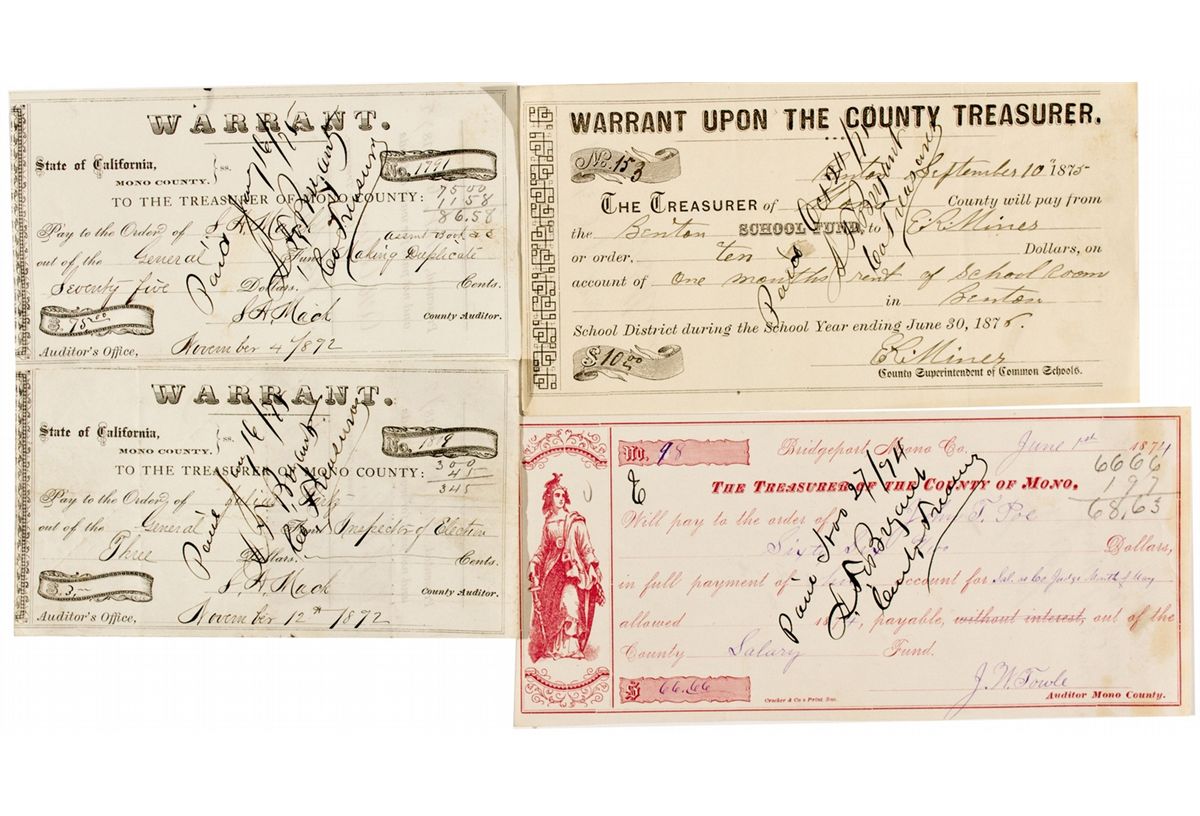 Lot of 4 different warrants signed by the county auditor.
