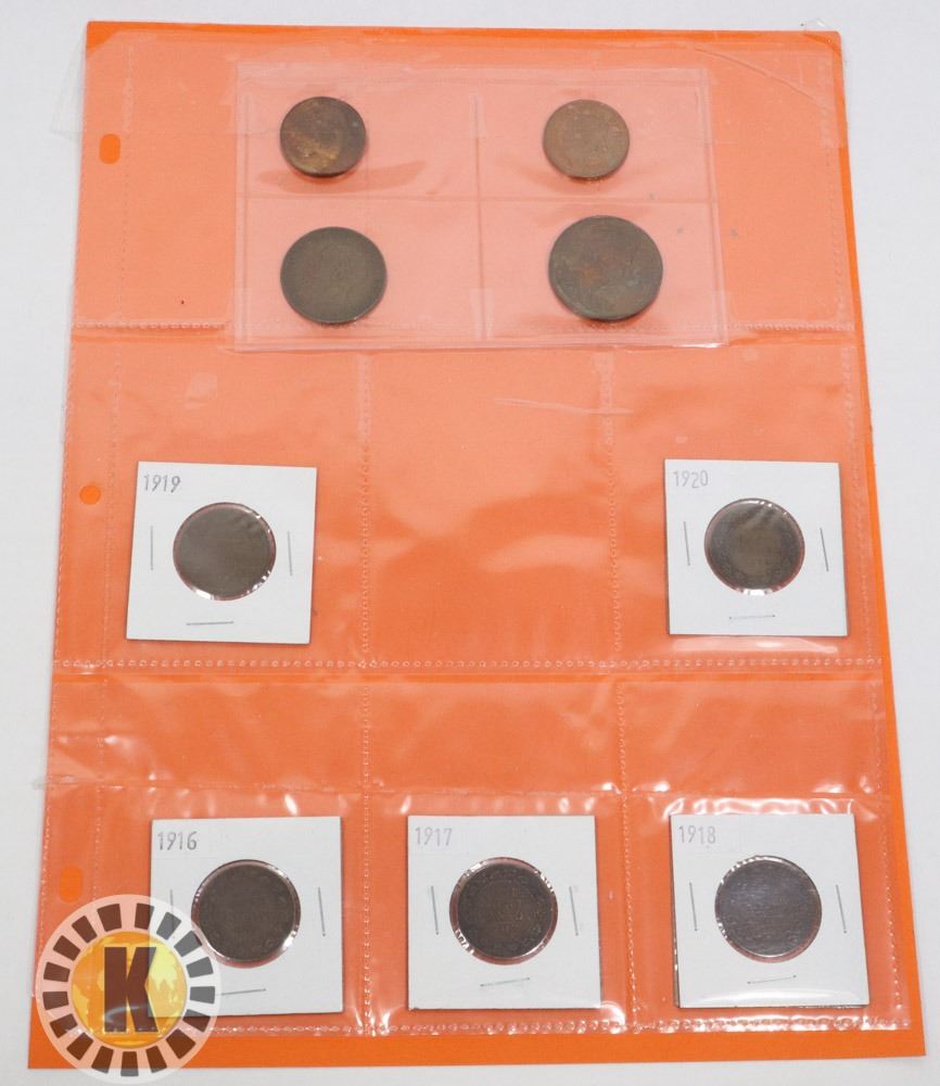 CANADA LARGE CENTS 1916-20 INCLUSIVE, 3 LARGE BRITISH COMMEMORATIVE COINS, AND SOME BRITISH PENCE 1940'S + CANADA ROYAL VISIT COINS 1937 UP.***ITEM(S) LOCATED IN LETHBRIDGE ALBERTA