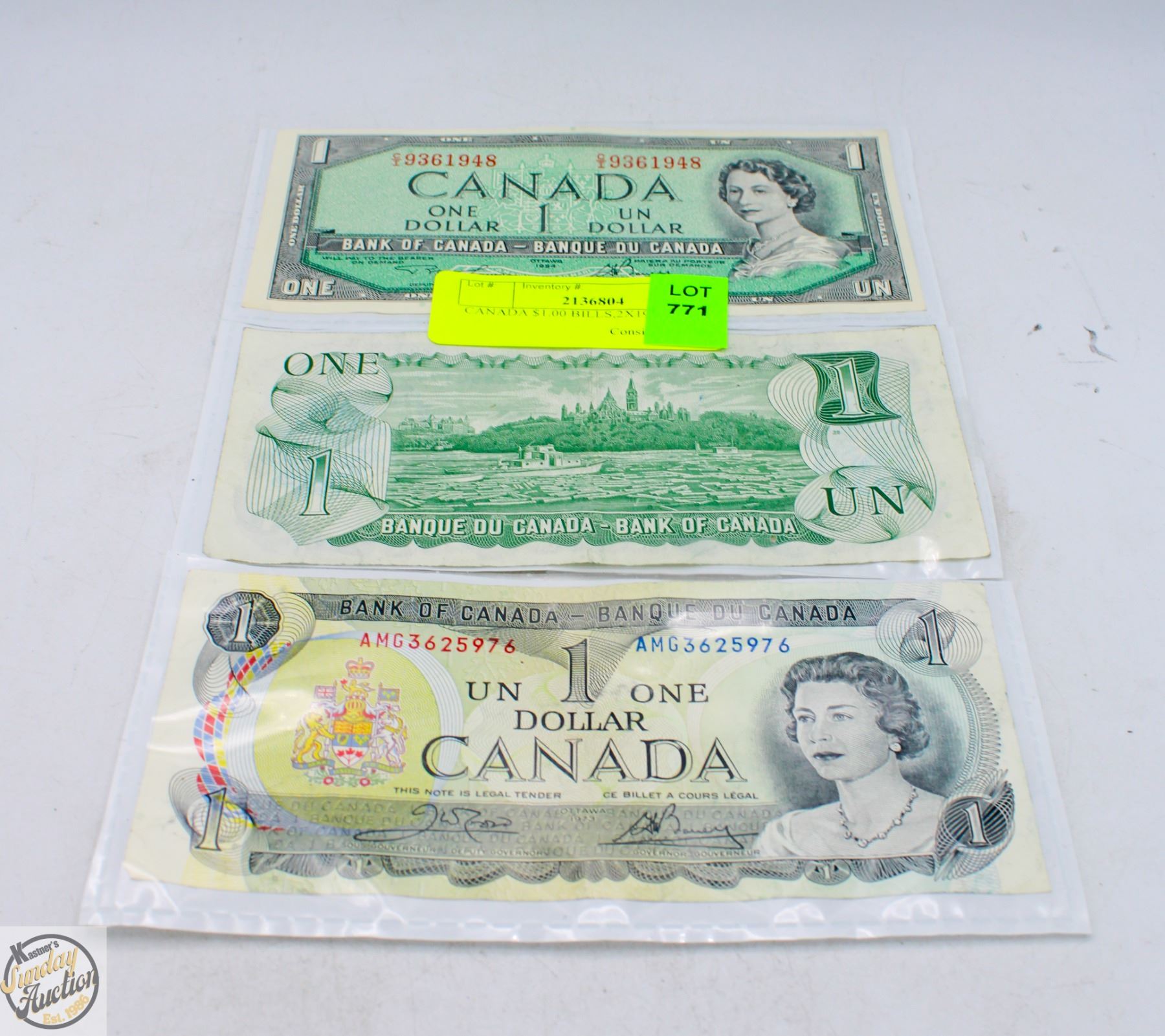 CANADA $1.00 BILLS,2X1973,1X 1954