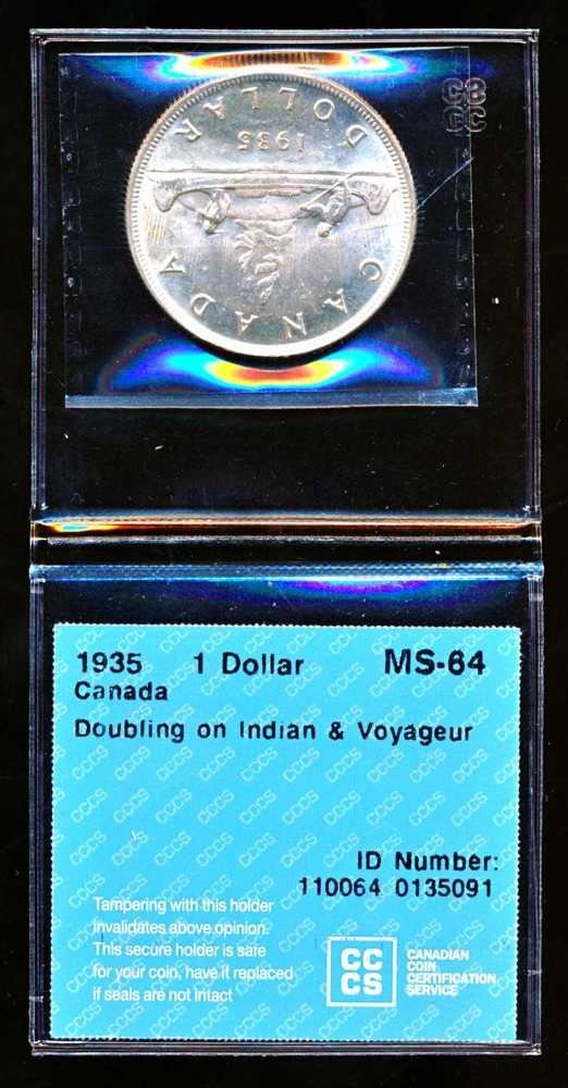 CANADA - $1 1935 Doubling on Indian & Voyageur CCCS MS-64