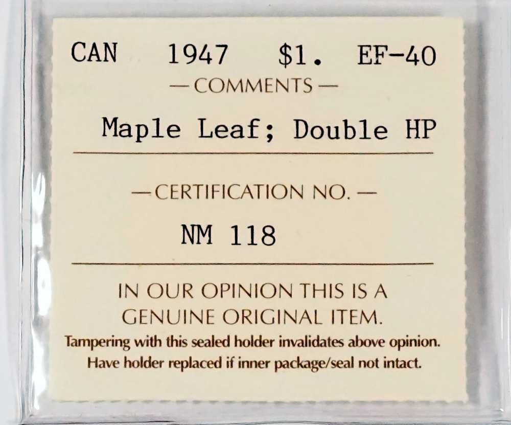 CANADA - $1 1947 Maple leaf double HP - ICCS EF-40