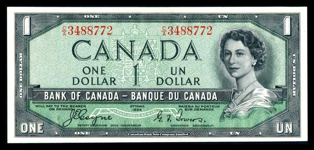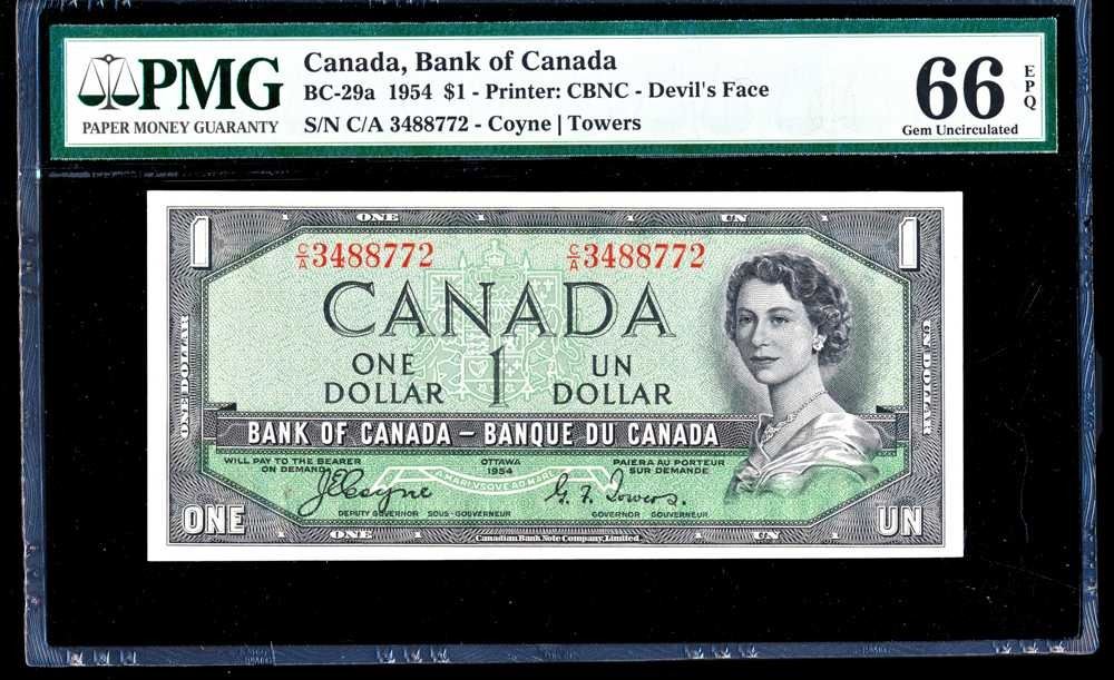 CANADA - 1$ 1954 Devil's Face Coyne Towers BC-29a PMG Gem Unc 66