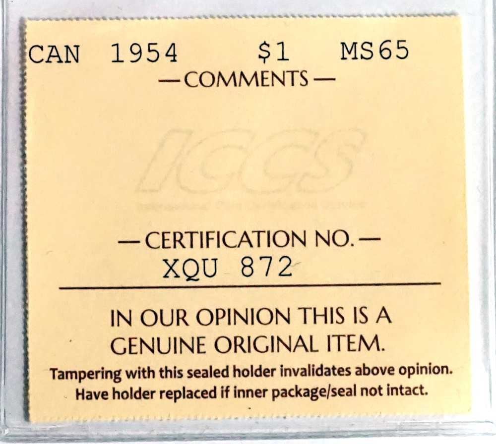CANADA - $1 1954 MS-65 ICCS