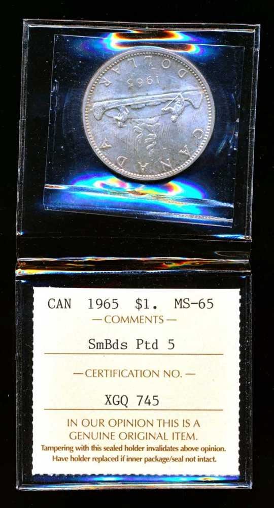 CANADA - $1 1965 MS-65 ICCS small beads pointed 5