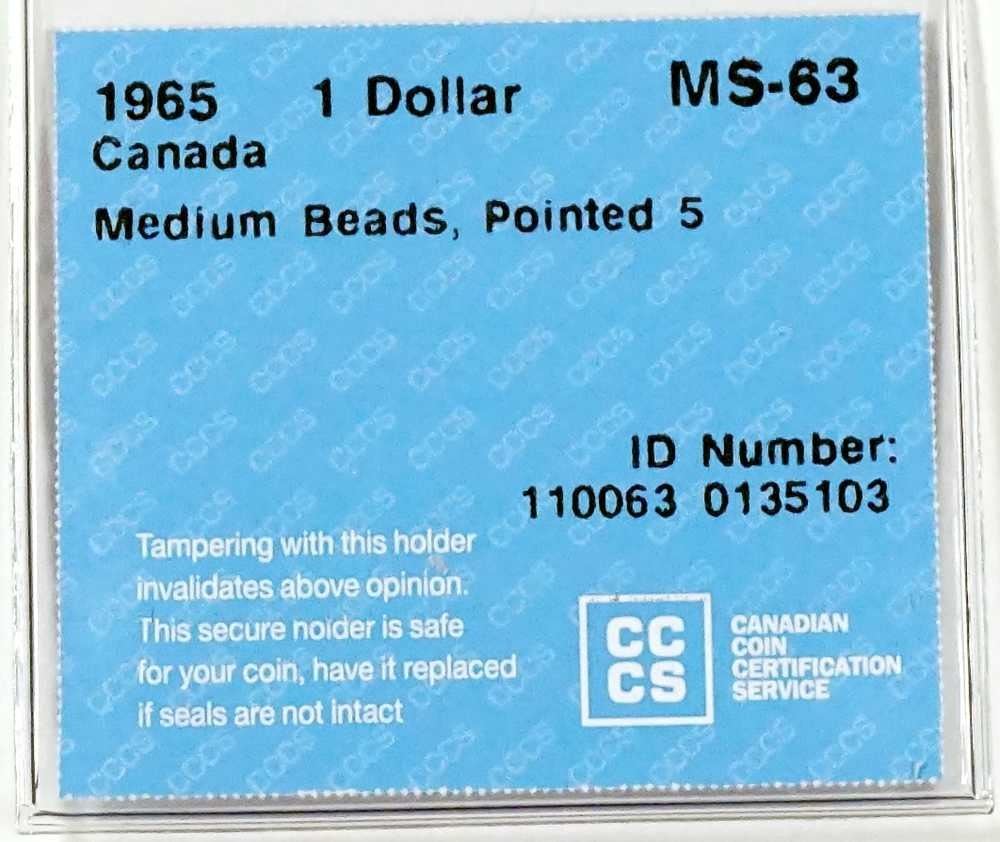 CANADA - 1$ 1965 Medium beads pointed 5 - MS-64