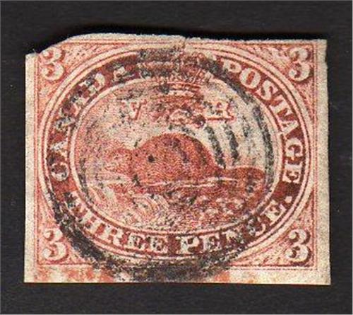 CANADA #1 VF IMPERF BEAVER STRONG LAID LINES