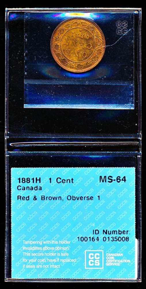 CANADA - 1 cent 1881-H rouge & brun obverse 1 CCCS MS-64