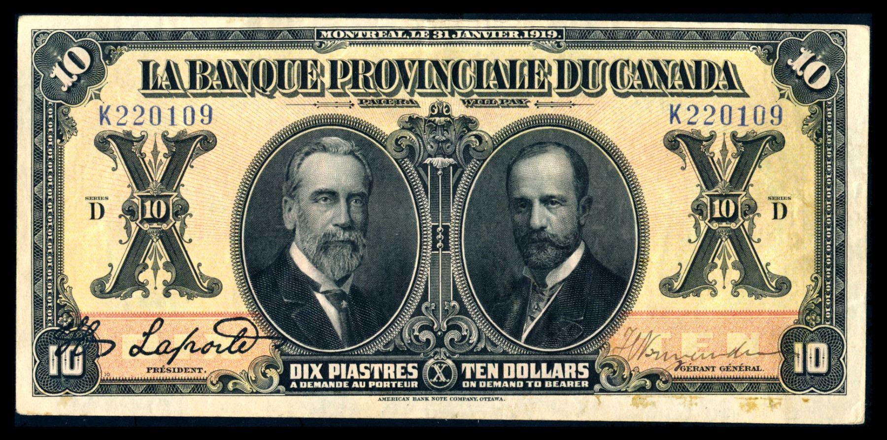 CANADA $10.00 1919 Banque Provinciale Very Fine