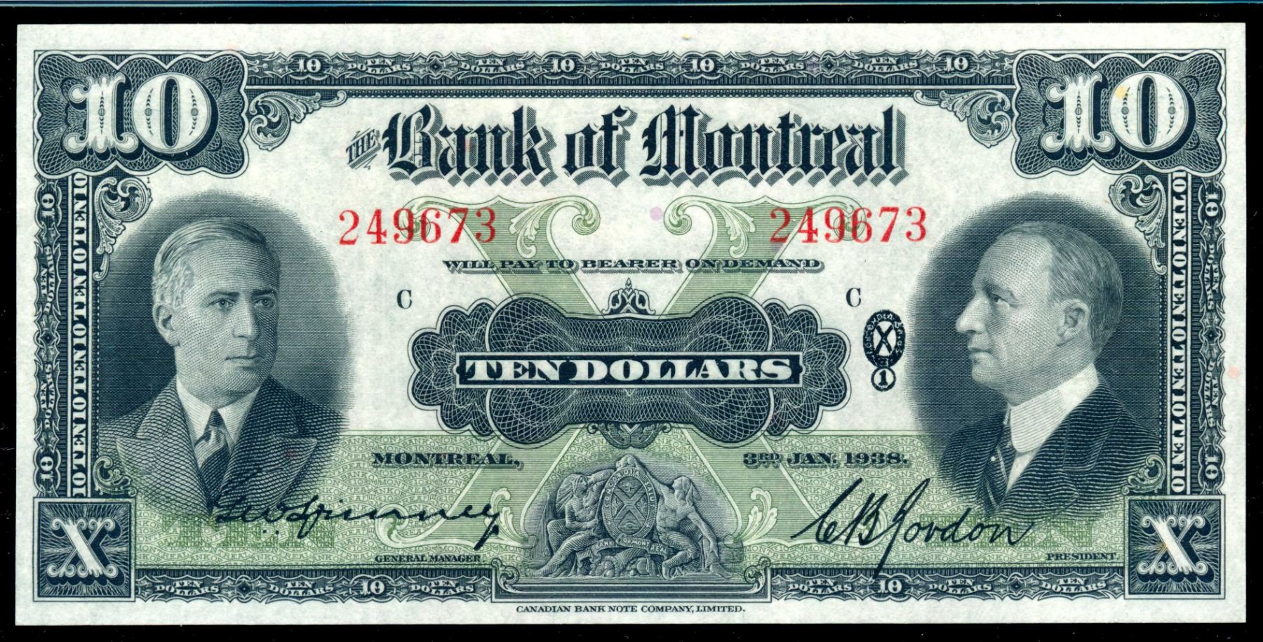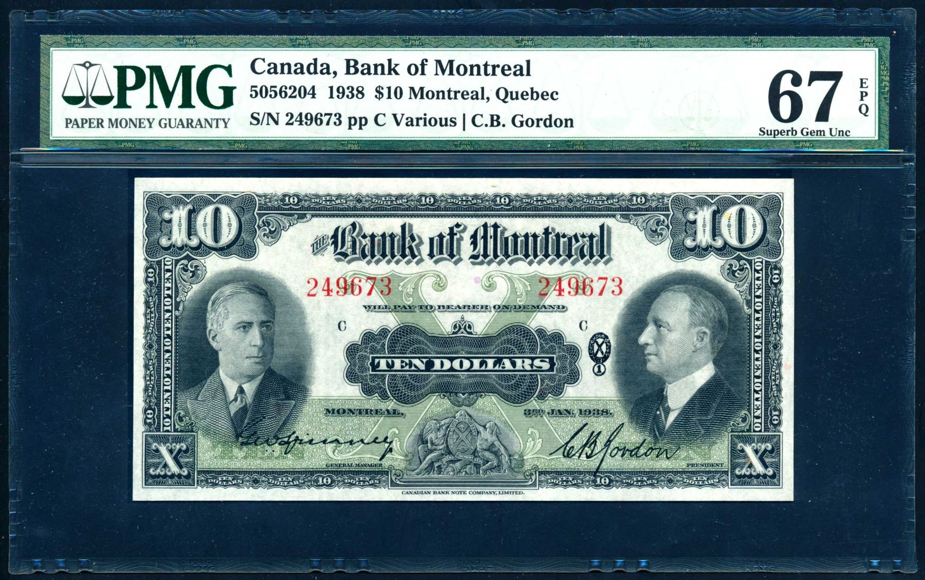 CANADA $10.00 1938 Bank of Montreal PMG GU-67