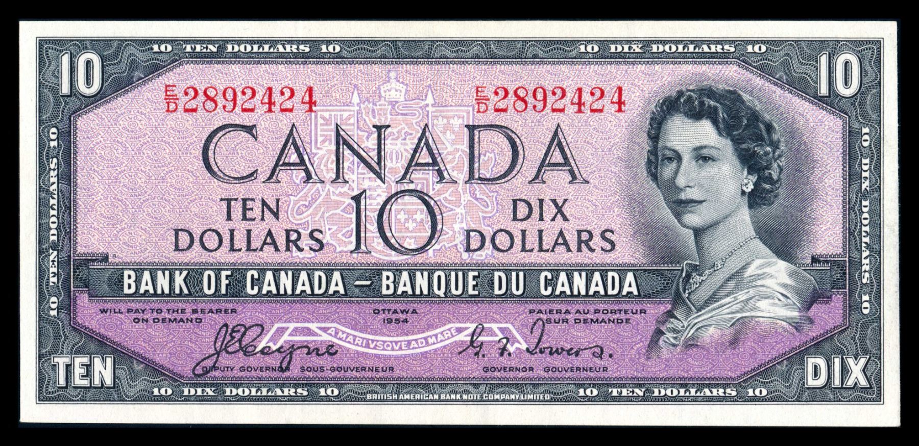 CANADA $10.00 1954 Devil's Face Banknote Extra Fine