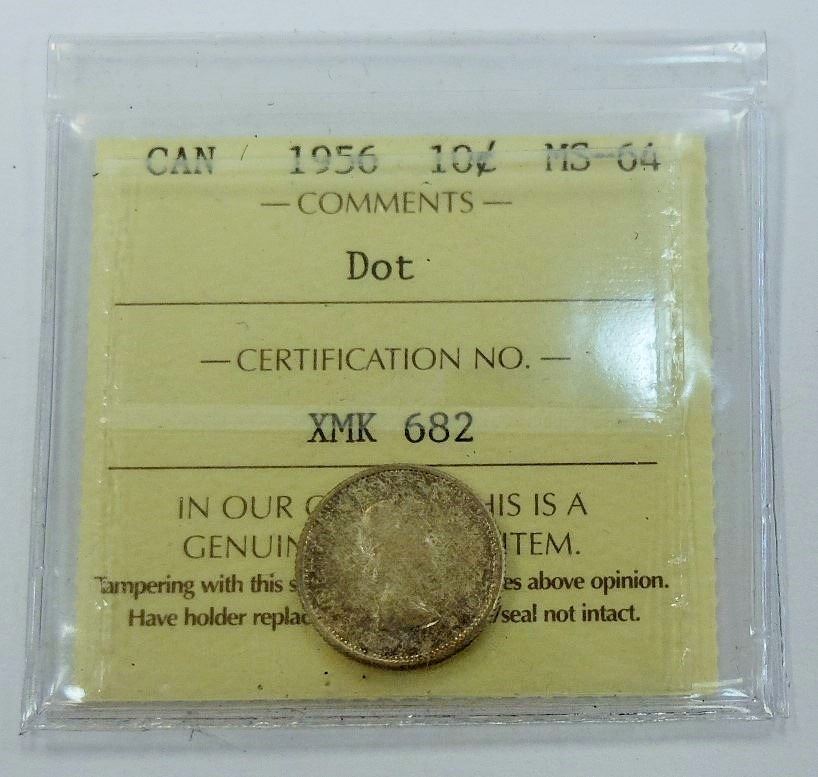 CANADA-10 CENT.1956 DOT, ICCS MS64