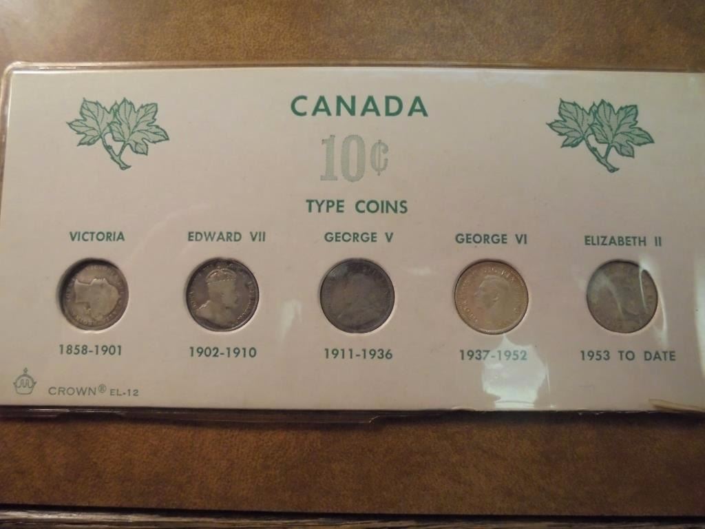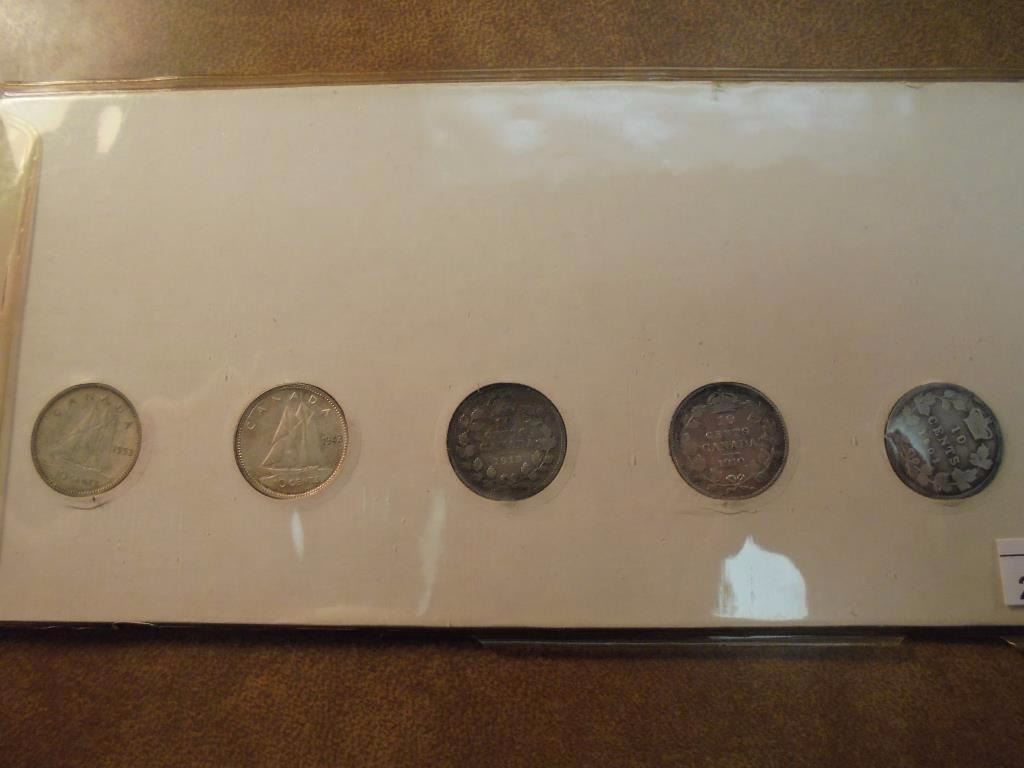 CANADA 10 CENT TYPE SET 5 DIMES INCLUDING 1901, 1910, 1913, 1943 & 1953, ALL SILVER