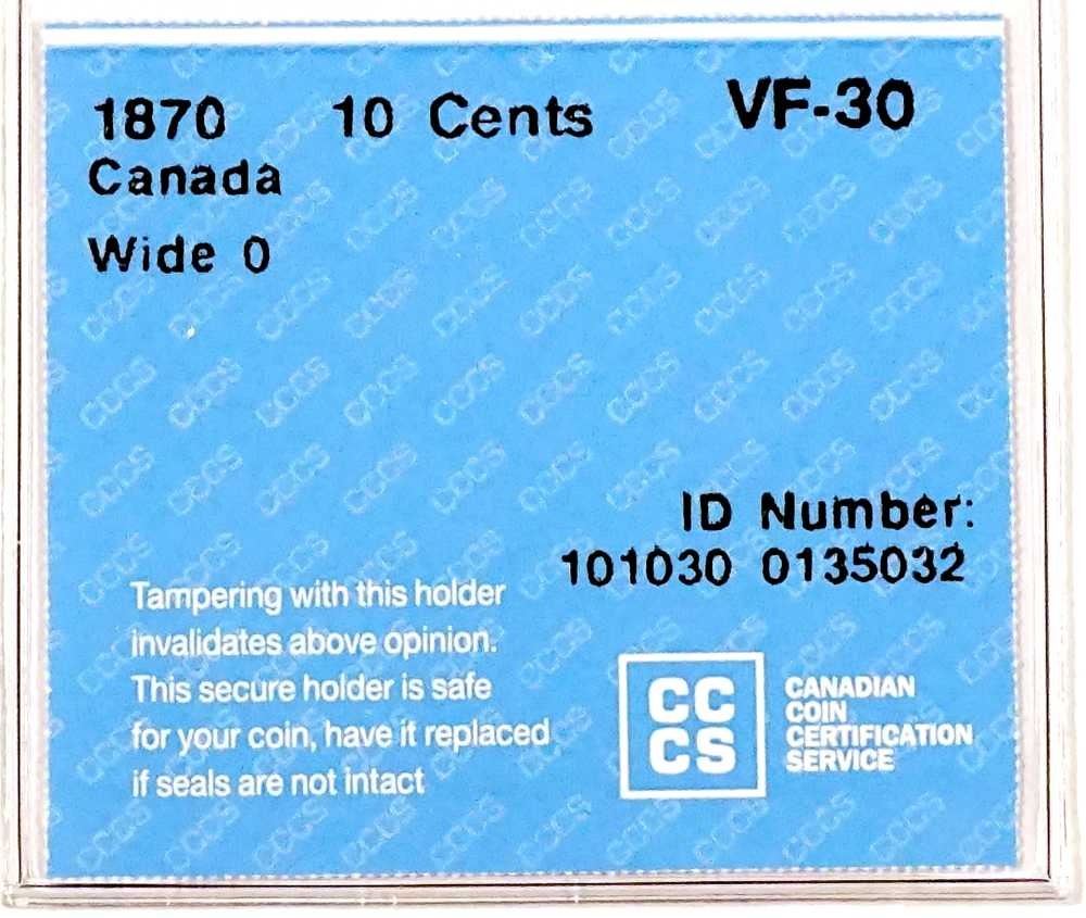 CANADA - 10 cents 1870 wide 0 CCCS VF-30