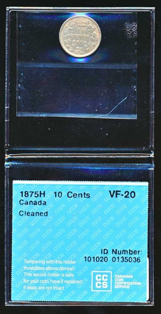 CANADA - 10 cents 1875-H cleaned CCCS VF-20