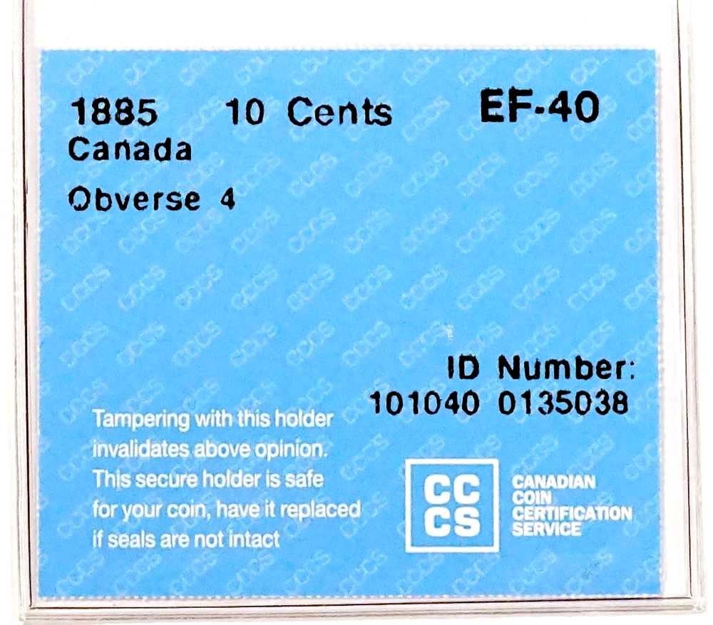CANADA - 10 cents 1885 obverse 4 CCCS EF-40