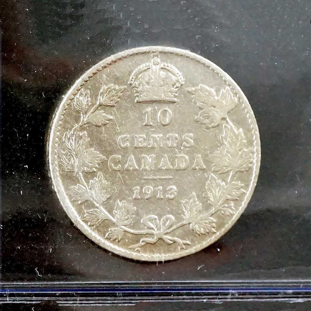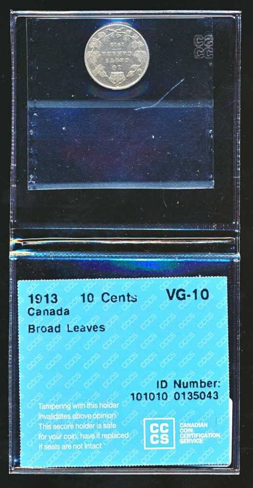 CANADA - 10 cents 1913 broad leaves CCCS VG-10