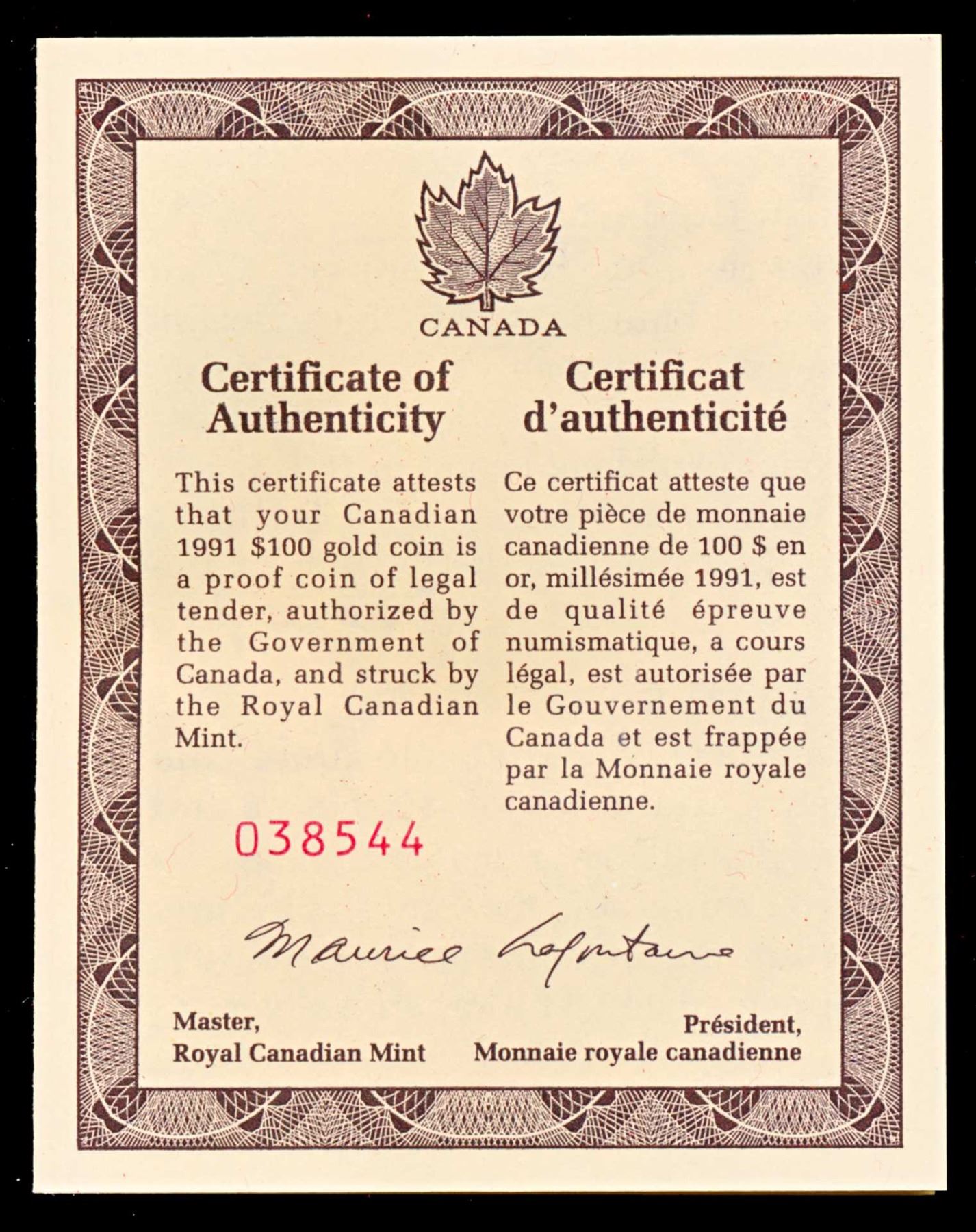 .250 tr.oz AU 14 Kt encapsulated coin in brown leather case and COA #038544