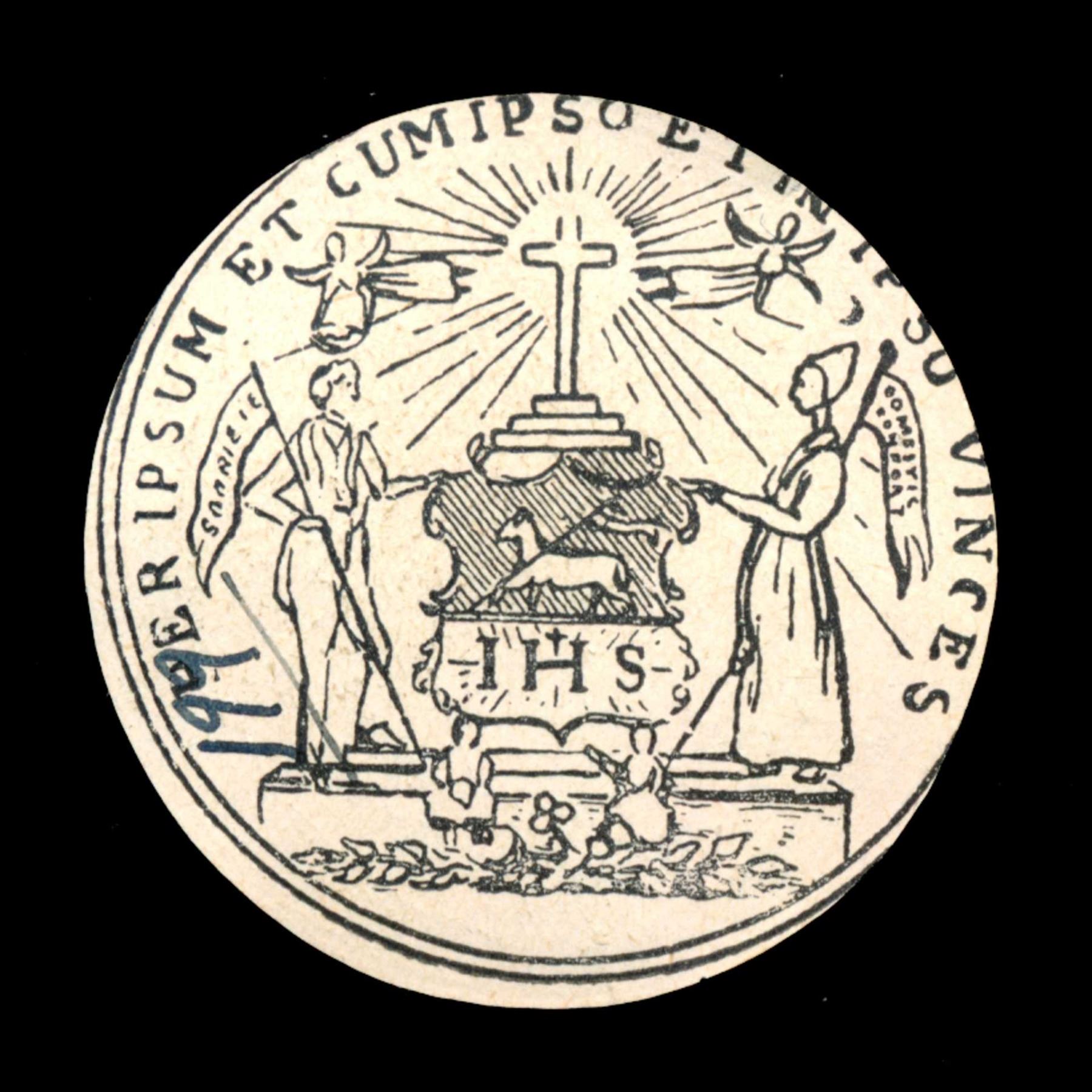 24.2 gm. Br-200, Lr-663, Ch# 2770-5 Uniface silver medal w/loop.beautifully toned RRRR plus a paper disc cut from a catalogue with notation 199 written by hand like the Br-199 Reverse but the Obverse of Br-193-195. A misprint??? The writer viewed the same type of dics in the Sherbrooke Seminary auctions???? Requires more research.