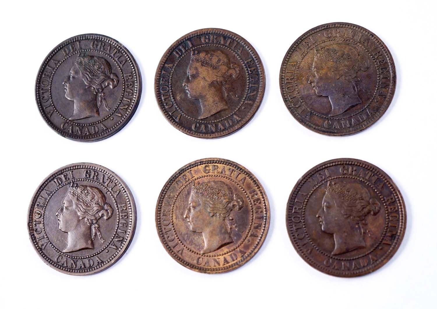 CANADA 1876-1884 A Lot of 6 Victorian One Cents in Fine+-Extra Fine