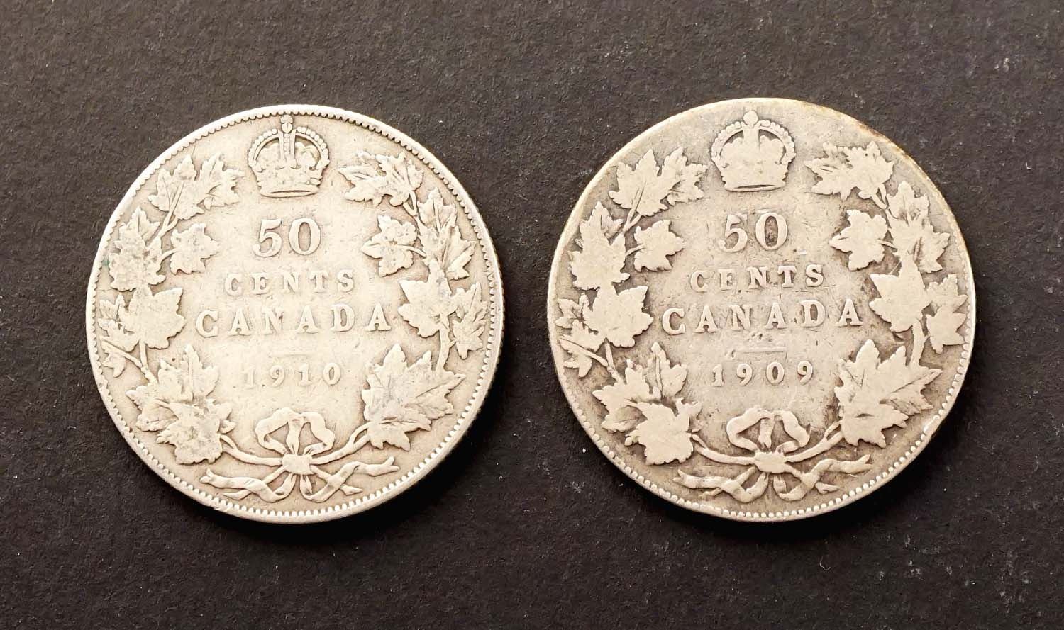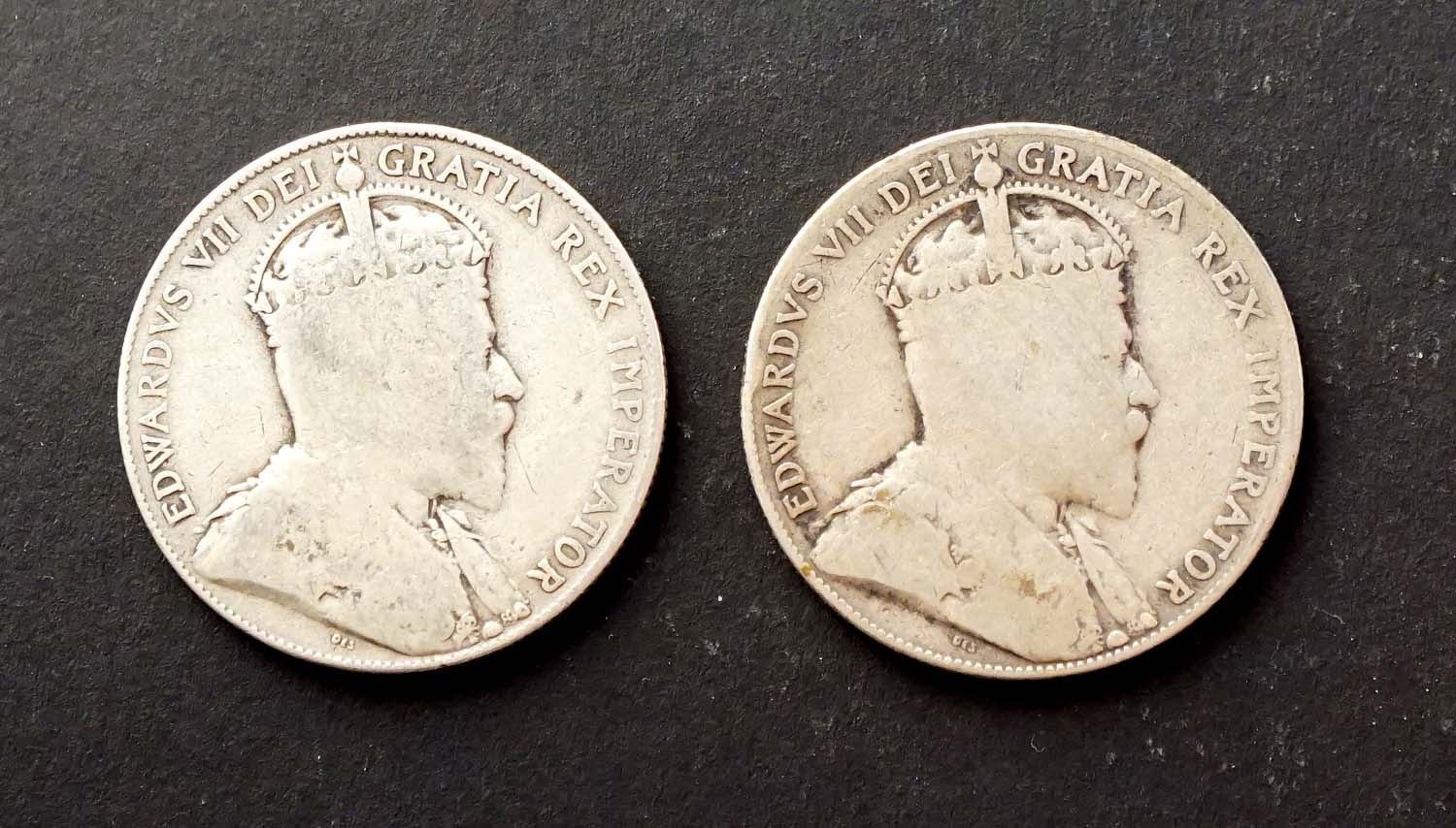 CANADA 1909-1910. Lot of 2 Edward VII Half Dollars VG-8 to VG-10