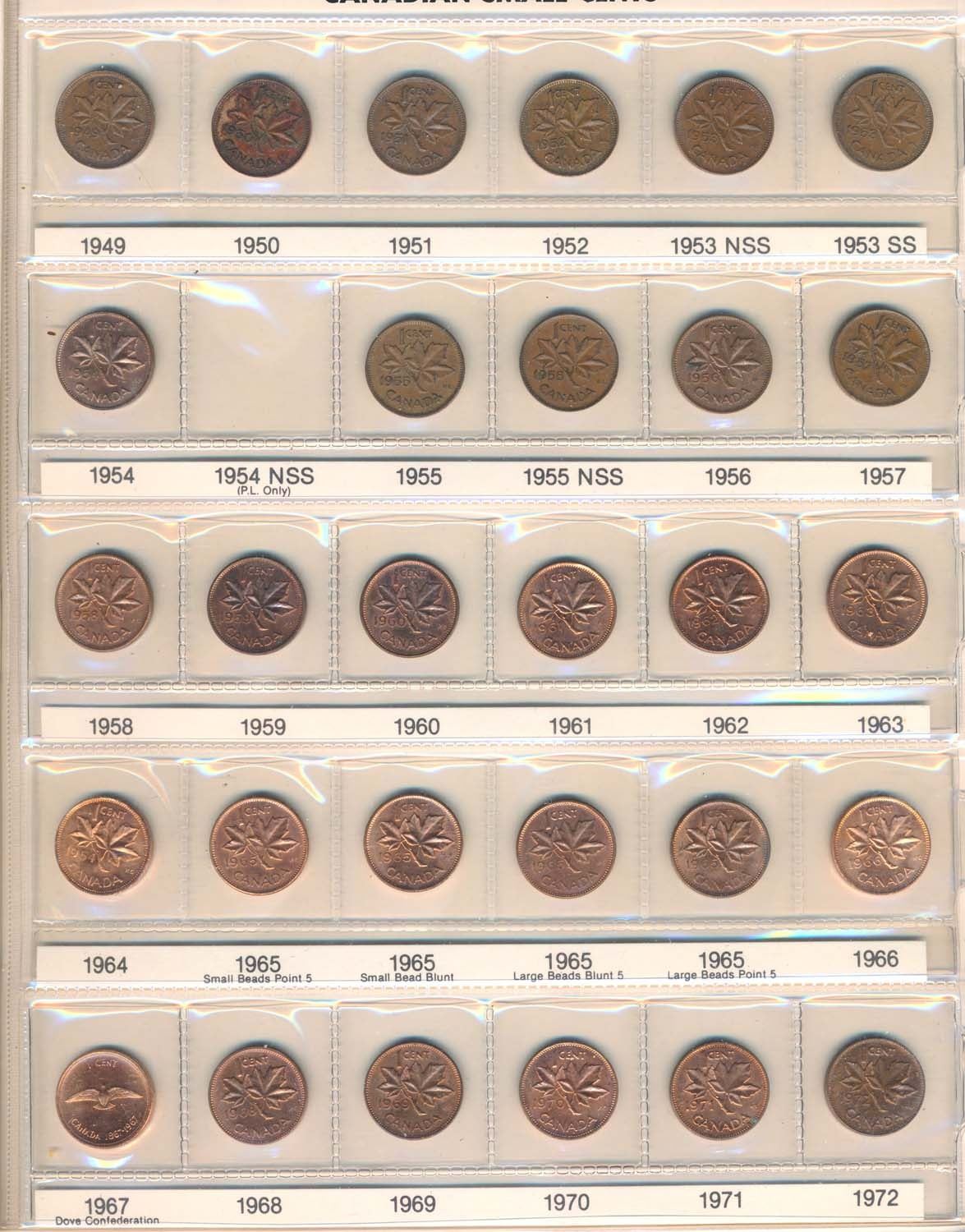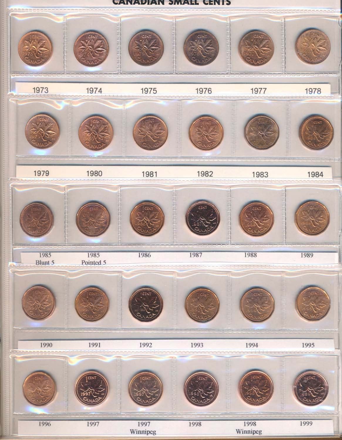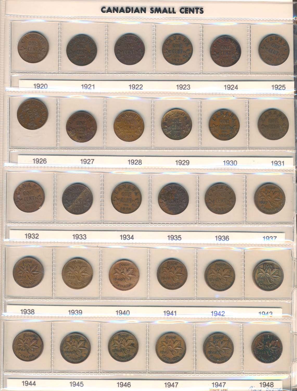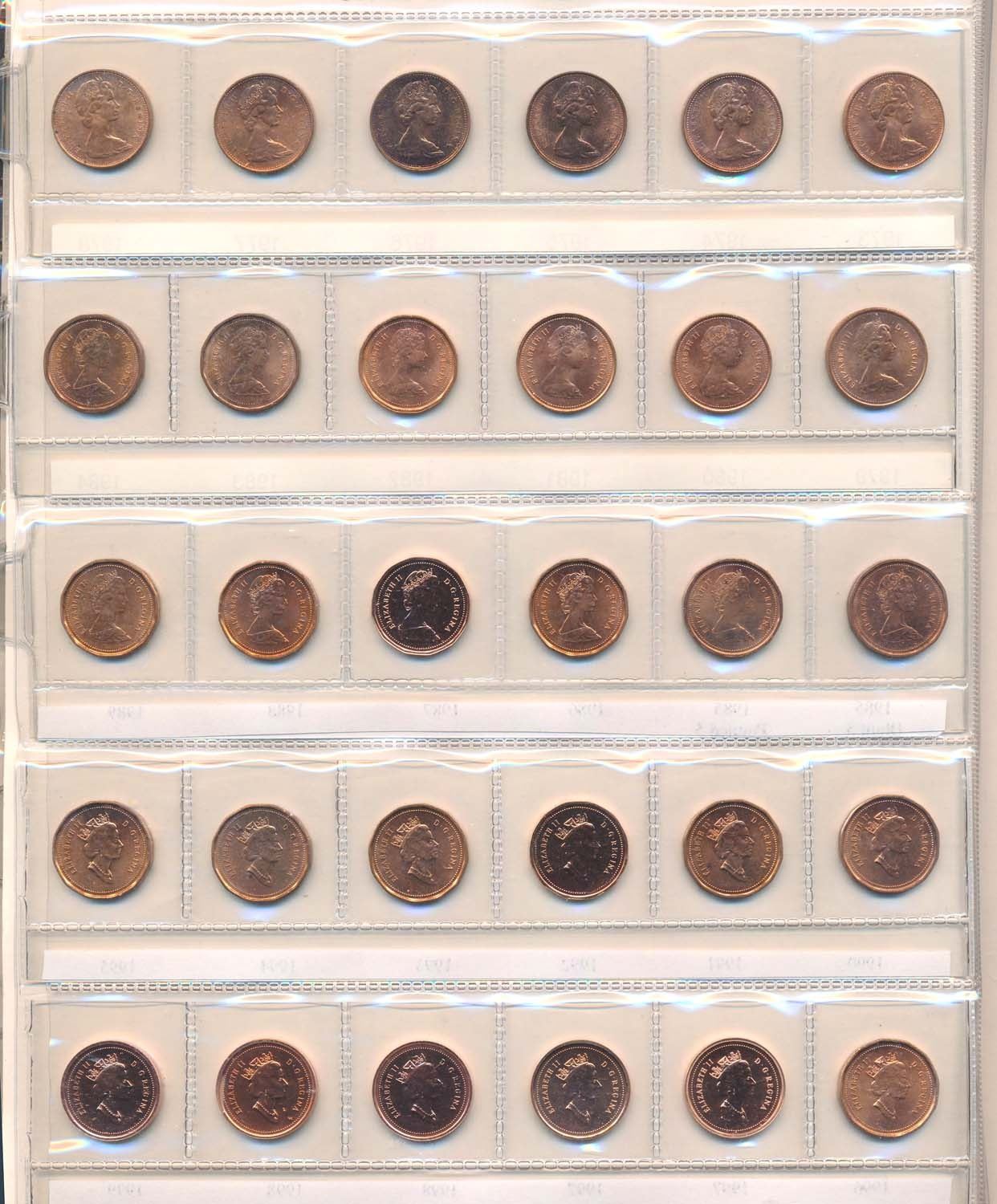 CANADA 1920-2017 Type/Year Cent Collection of 133 Coins in Uni-Safe Binder Fine-UNC