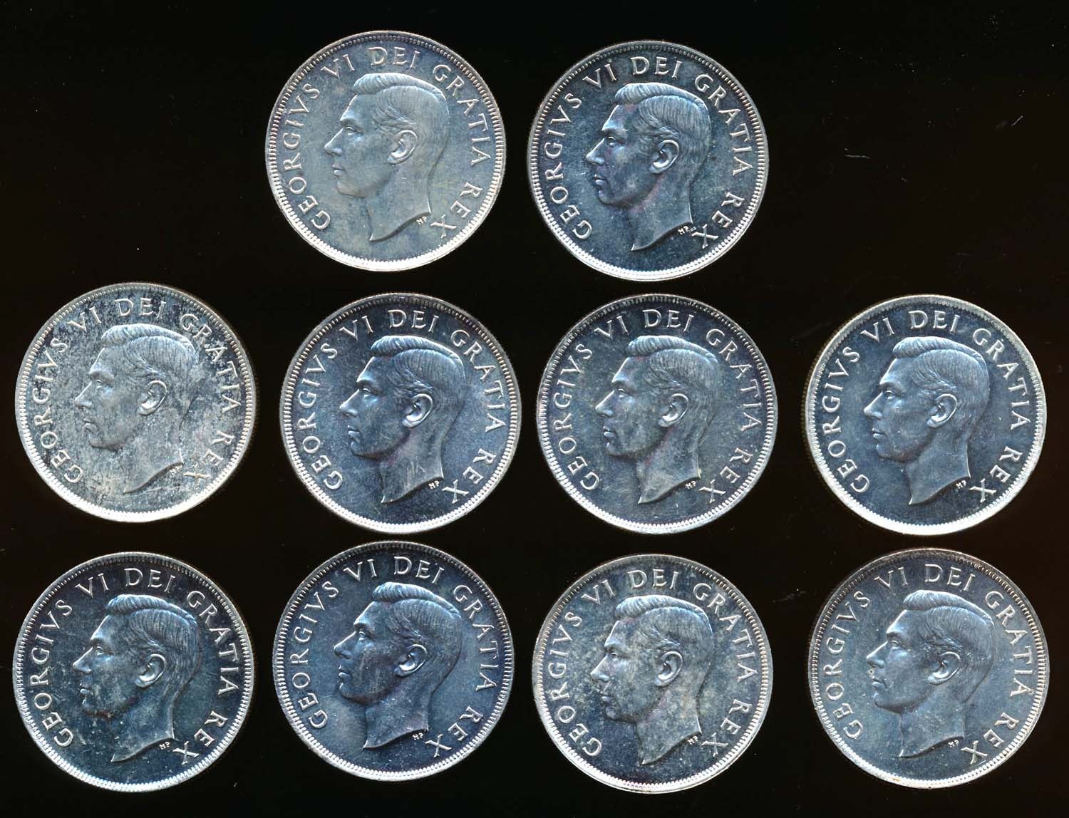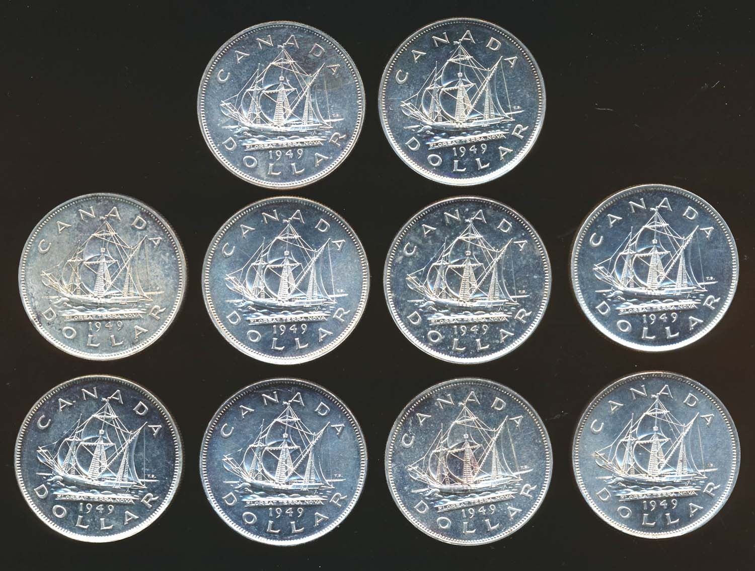 CANADA 1949 A Lot of 10 Commemorative Dollars From An Original Roll Mint State