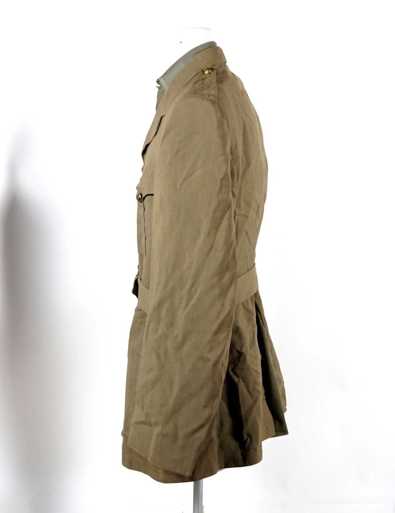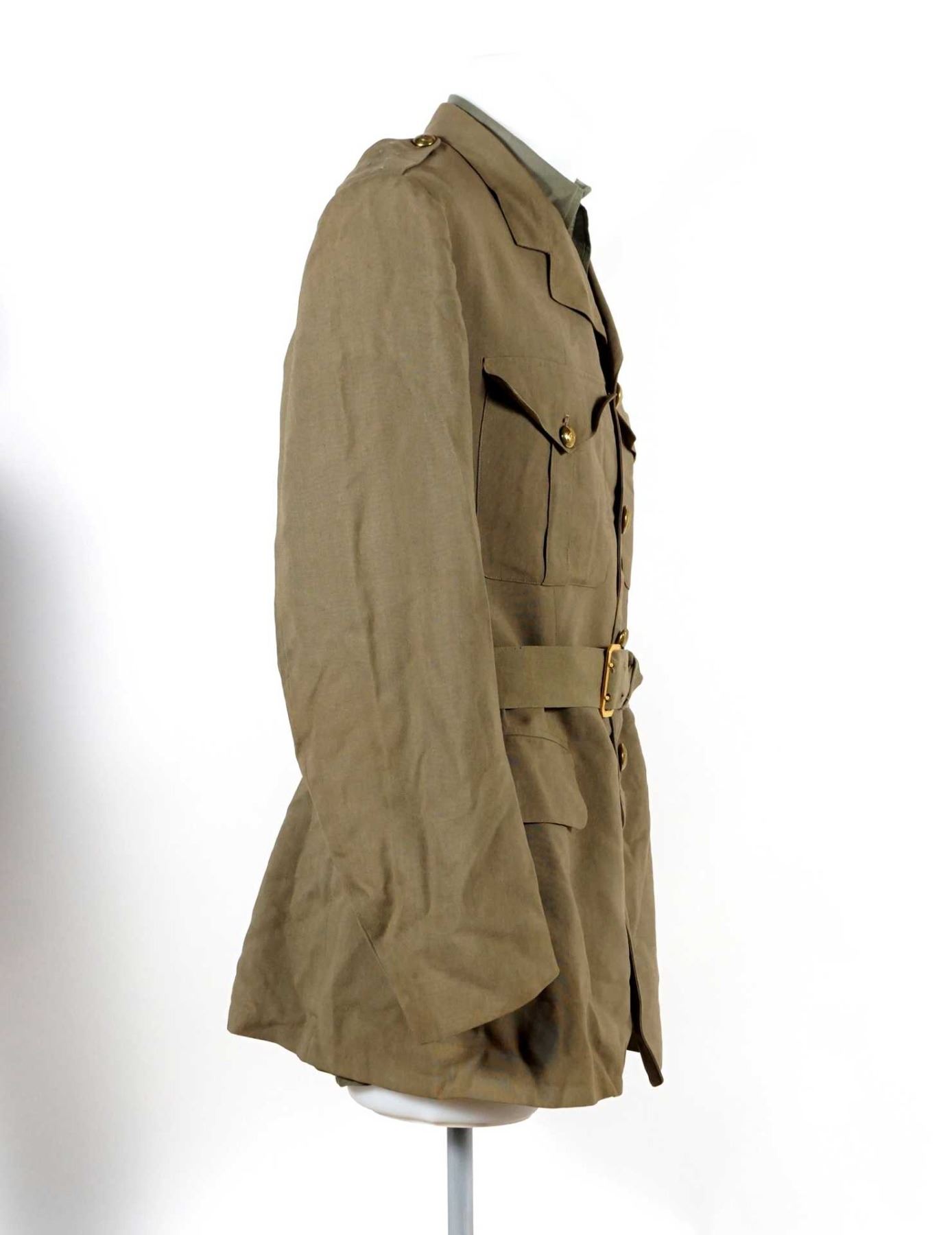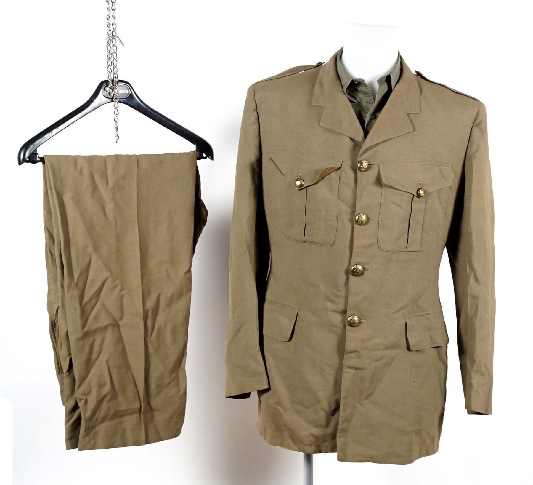 Jacket: #1 Tropical 1951 Size 17 (6'1"-6'2") Breast 42 by Strathcona Garment Manufacturers Co., comes with 6 x 27 mm. and 4 x 19 mm. brass buttons by United-Carr. Trousers: Summer 1952 Size 15 (5'11-6') Waist 37 by Major Craft Uniform Co. with unmarked light green shirt.