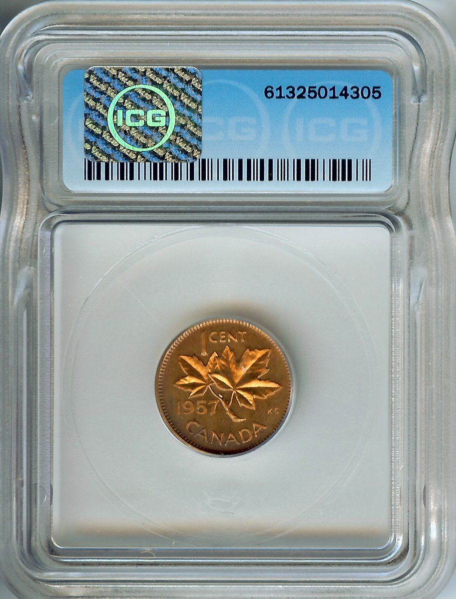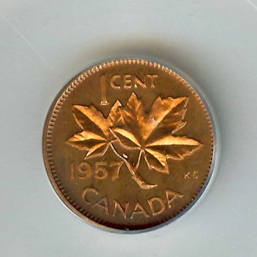 CANADA 1957 SMALL CENT ICG PL66 RB