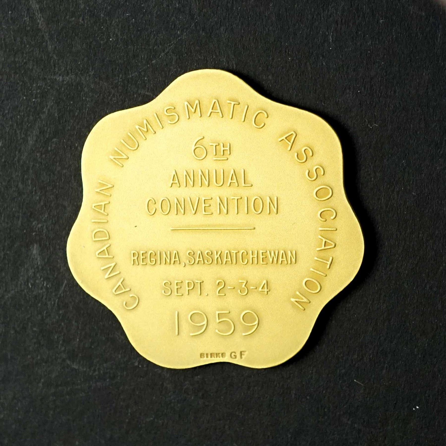 CANADA 1959 RCNA CNA-6B Regina Gold Filled Medal FDC